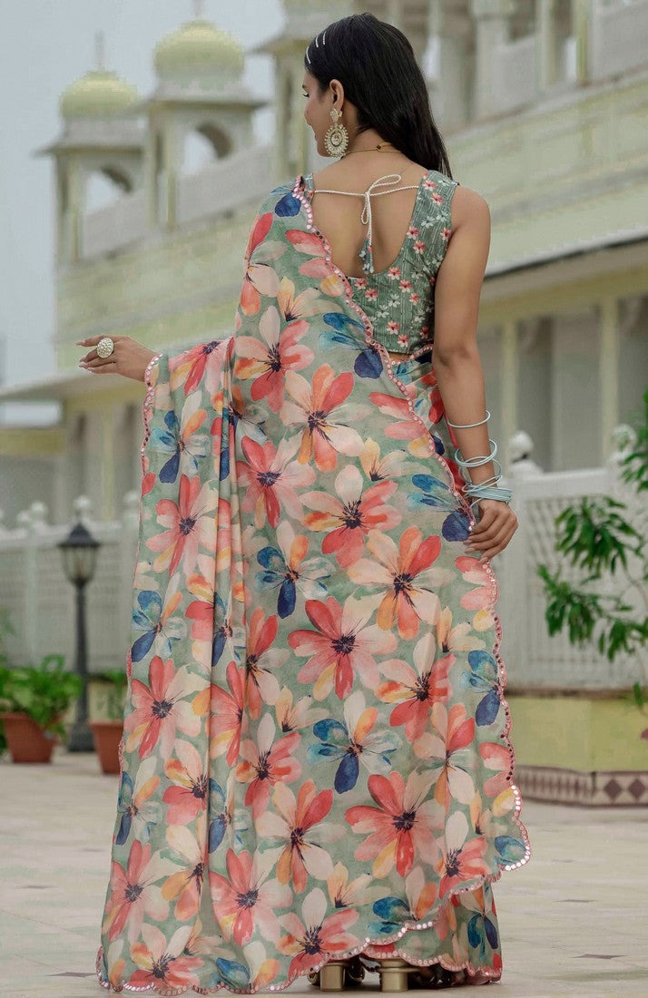 Attractive These Party Wear Ready To Wear Saree in Fine Colored.These Saree is Fabricated On Chinon Pair With Chinon Blouse.Its Beautified Designer Digital Printed With Mirror Cut Work Border.