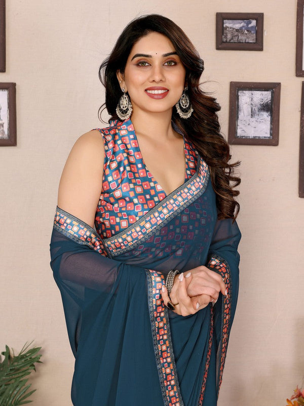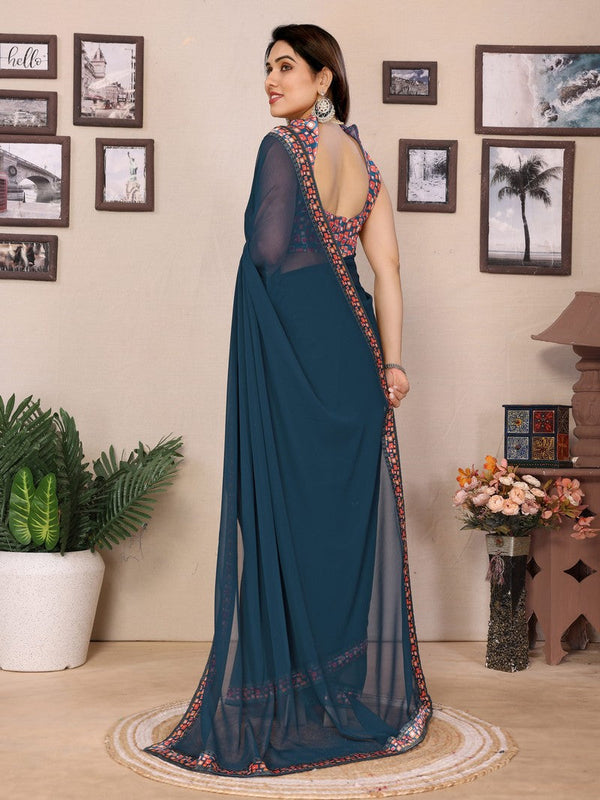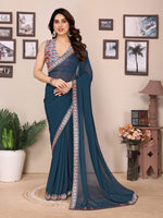 Amazing Teal Color Georgette Fabric Casual Saree