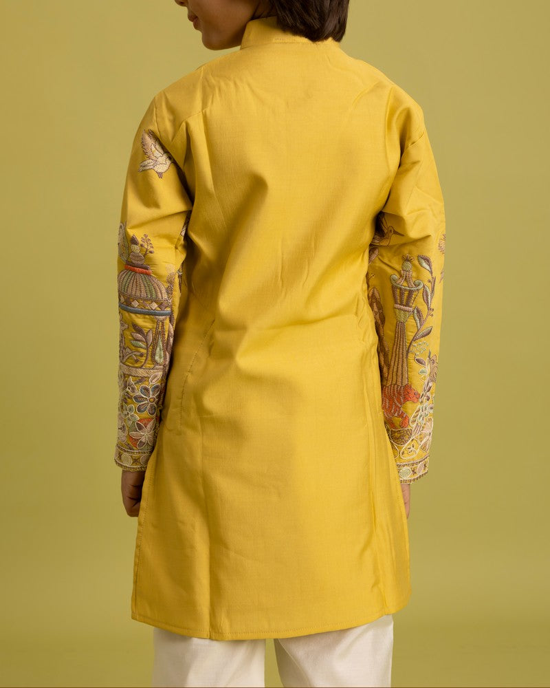 Dazzling Yellow Color Viscose Fabric Boys Kurta Pajama