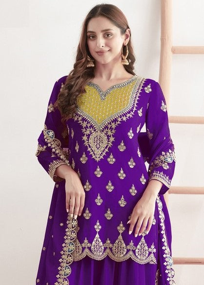Divine Purple Color Chinon Fabric Plazzo Suit