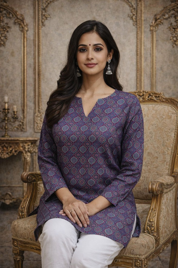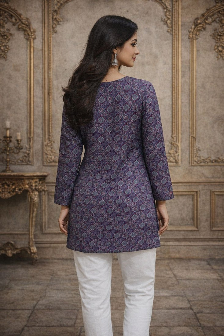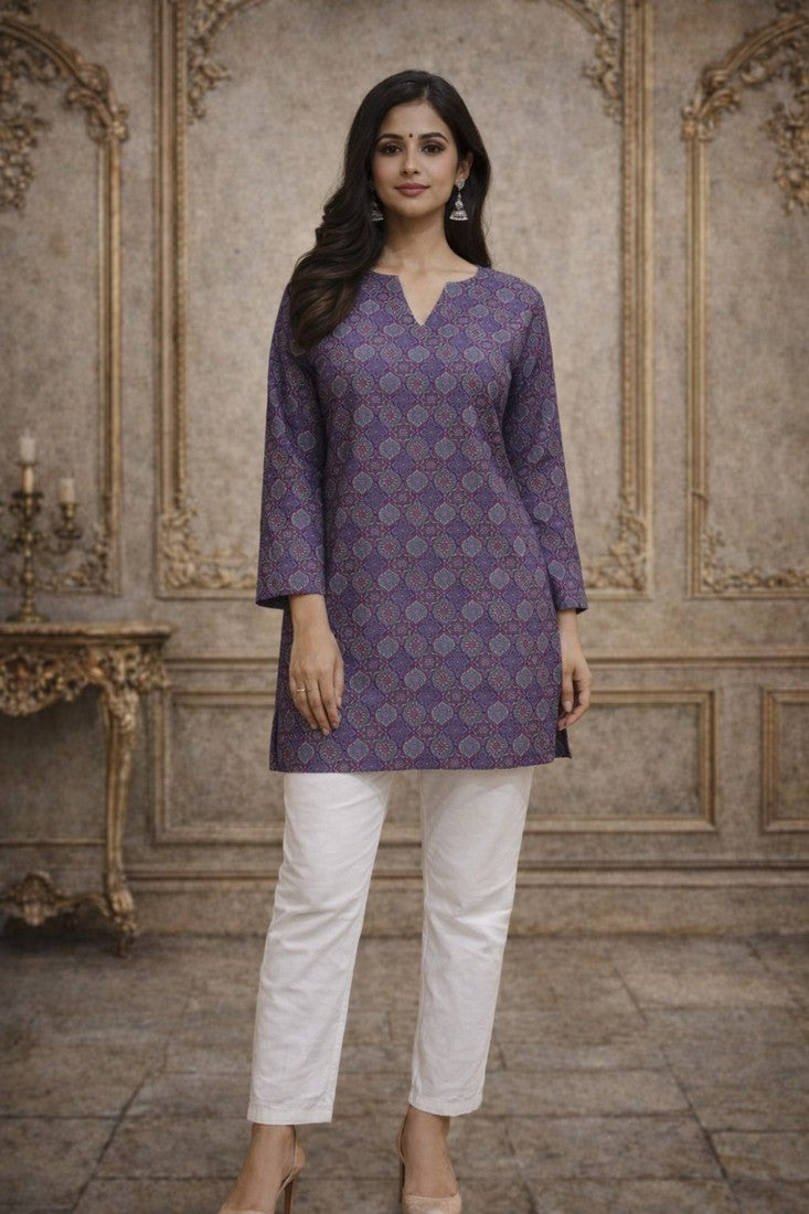 Classy Purple Color Muslin Fabric Casual Kurti