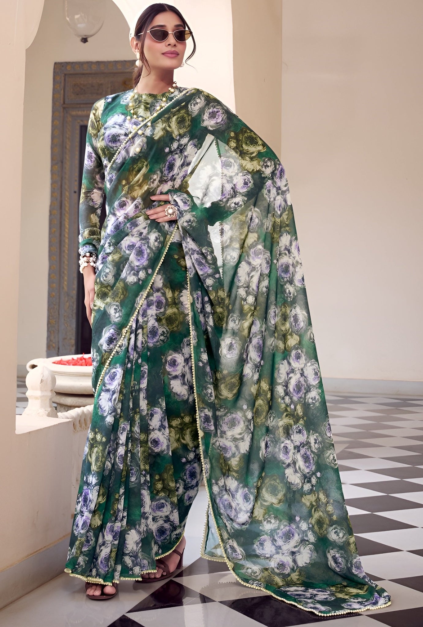 Beautiful Green Color Georgette Fabric Casual Saree