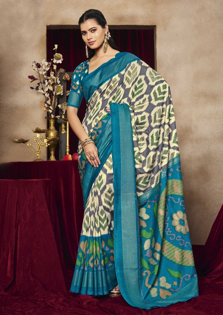 | Color | Saree Color - Grey, Blouse Color - Blue |