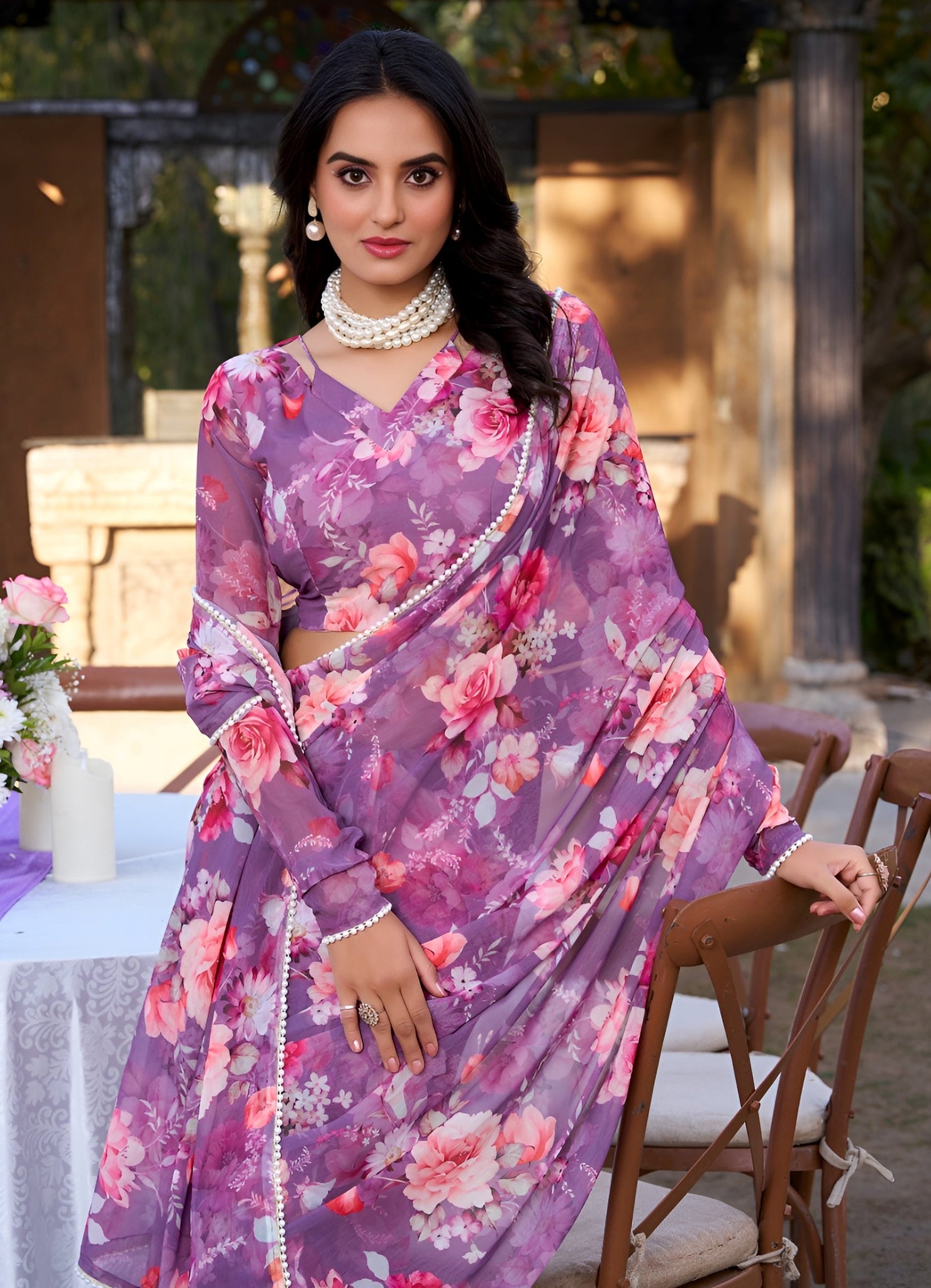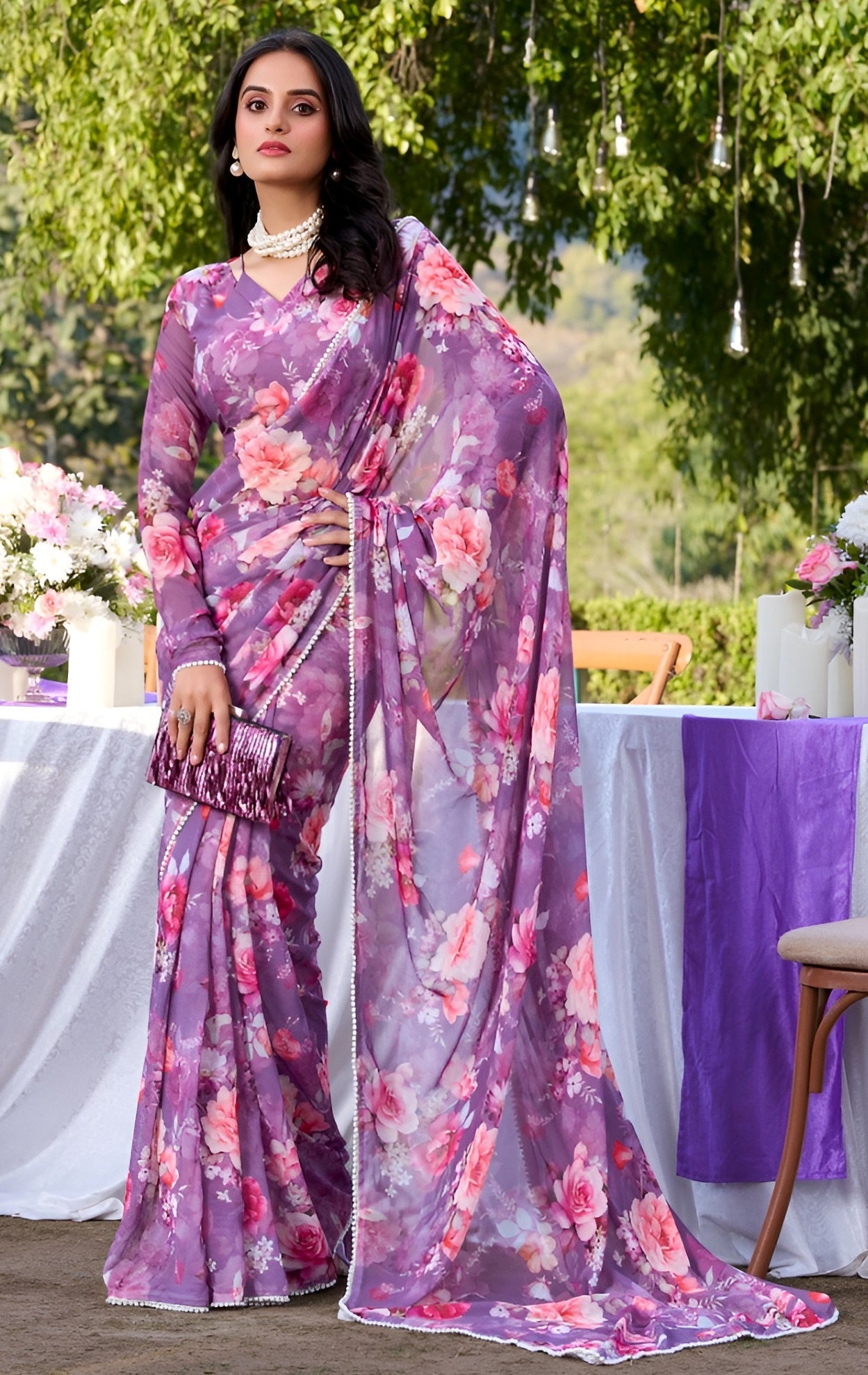 Beautiful Purple Color Georgette Fabric Casual Saree