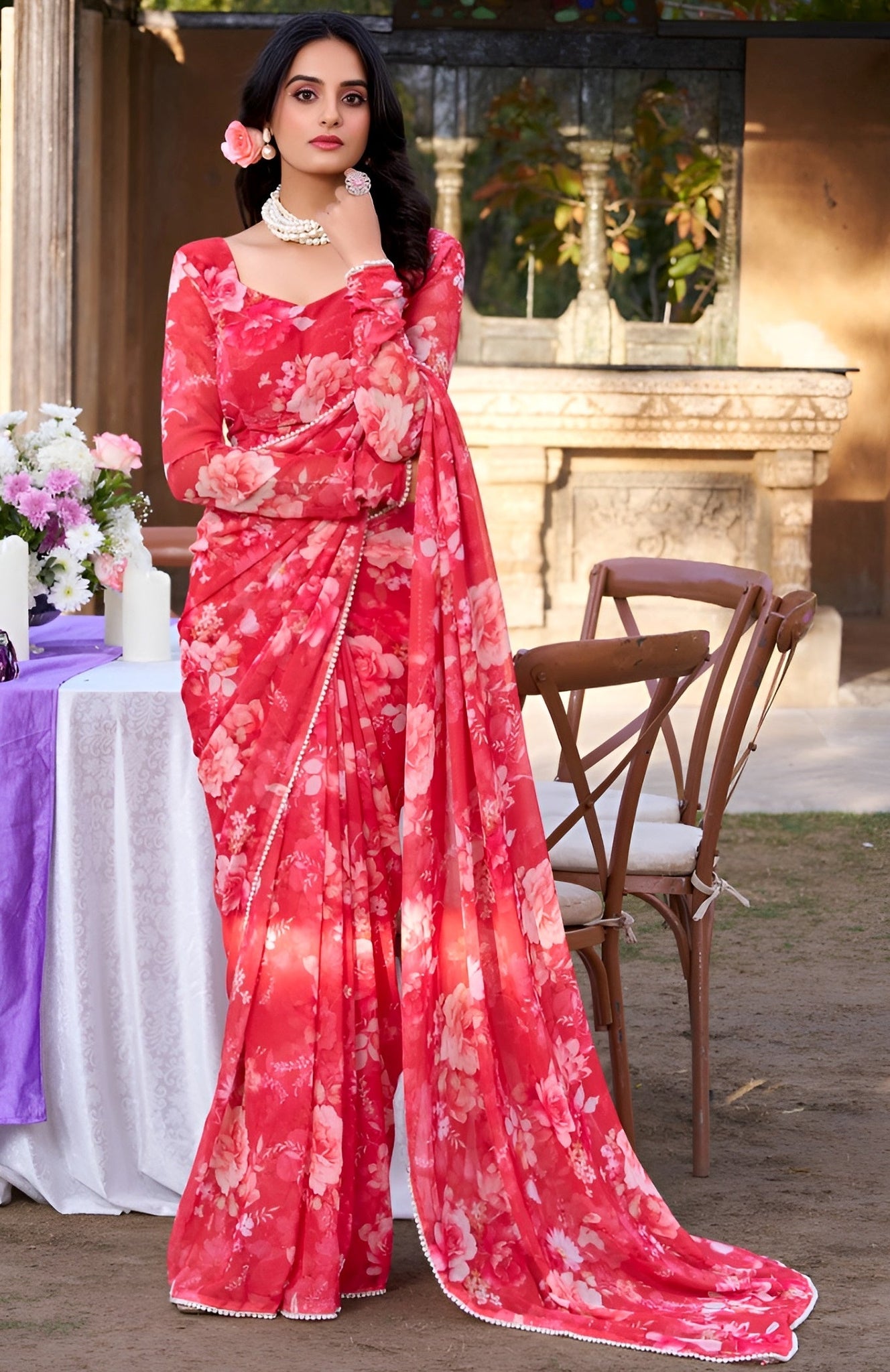 Grab These Party Wear Ready To Wear Saree in Fine Colored.These Saree Are Georgette And Blouse is Georgette Fabricated.Its Beautified With Floral Designer Printed With Moti Lace.