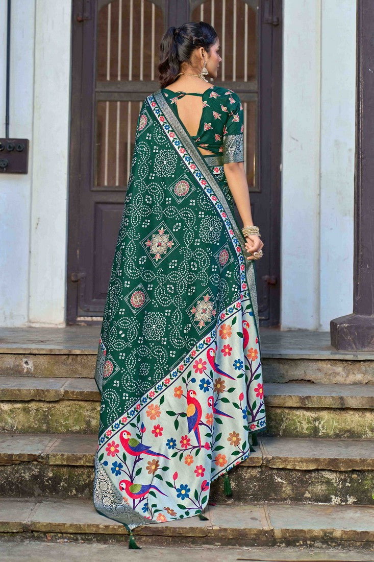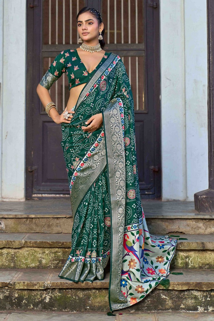 Looking These Traditinol Party Wear Saree in Fine Colored.These Saree Are Silk And Blouse is Fabricated On Silk Pair.Its Beautified With Woven Designer,Bandhani Ajrakh Printed.