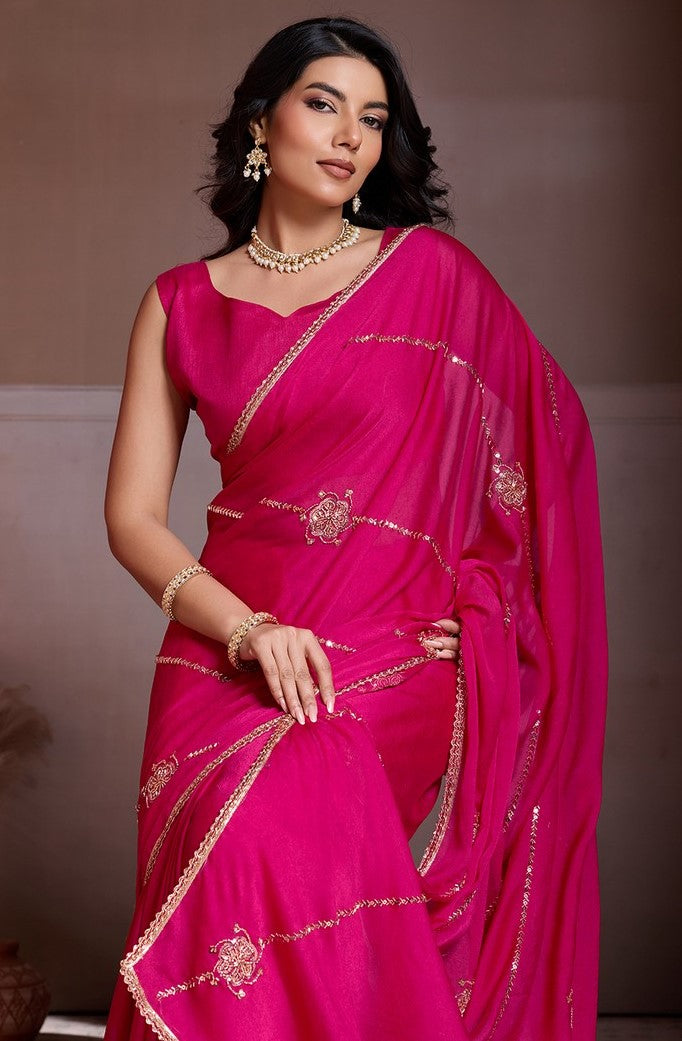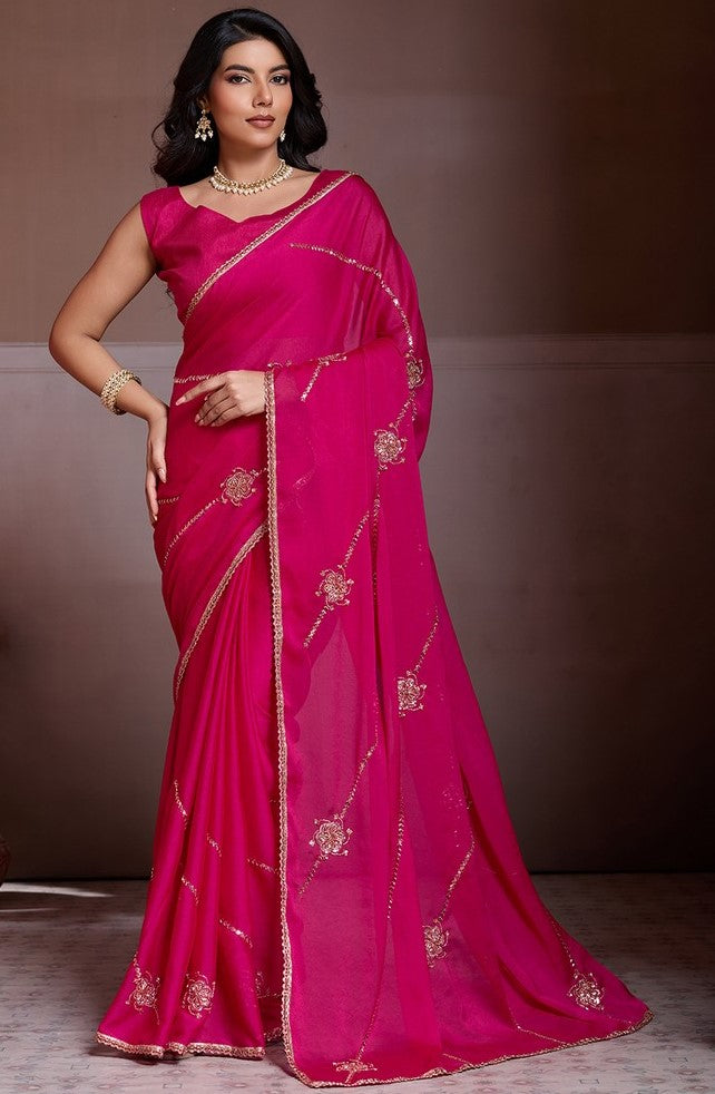 Lovely Pink Color Silk Fabric Casual Saree