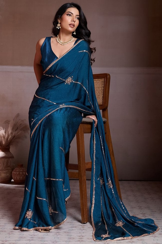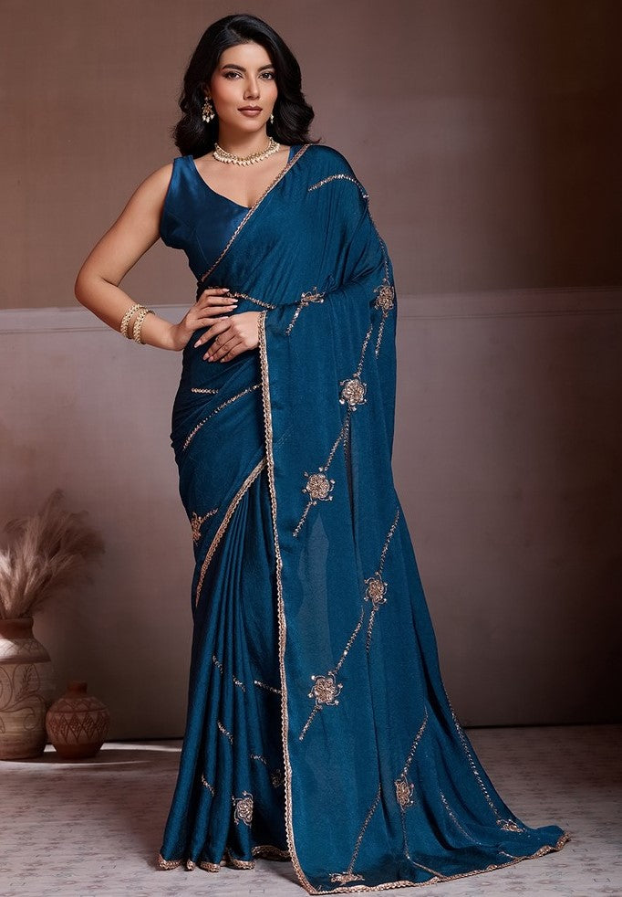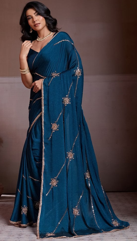 | Color | Saree Color - Teal, Blouse Color - Teal |