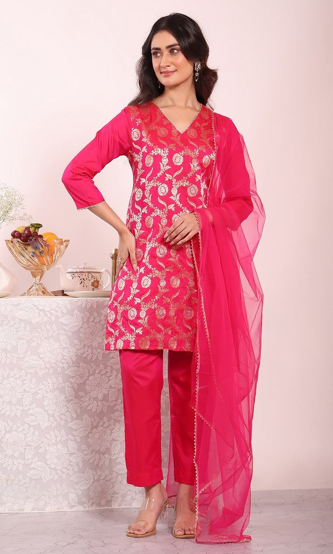 Beautiful Pink Color Silk Fabric Casual Suit