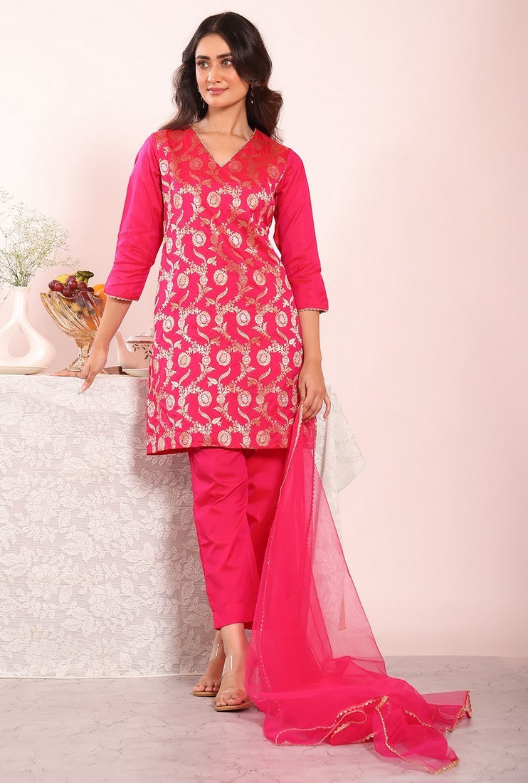 | Color | Top Color - Pink, Bottom Color - Pink, Dupatta Color - Pink |