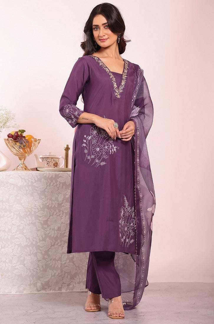 Beautiful Purple Color Silk Fabric Casual Suit