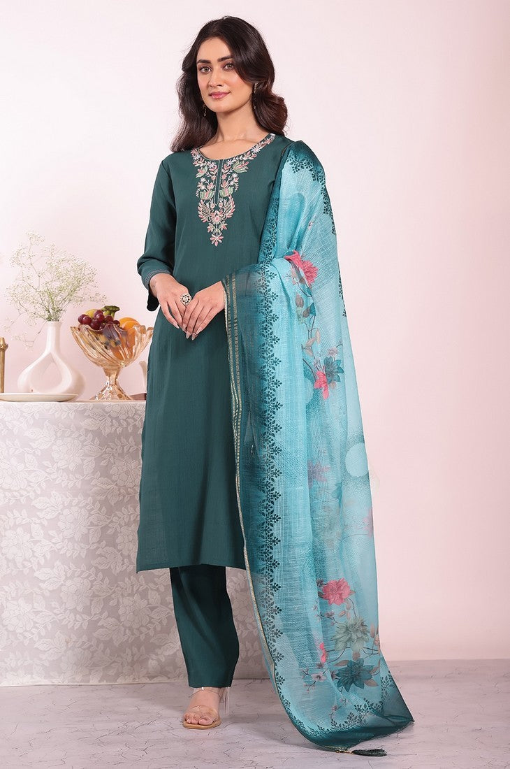 Beautiful Teal Color Silk Fabric Casual Suit
