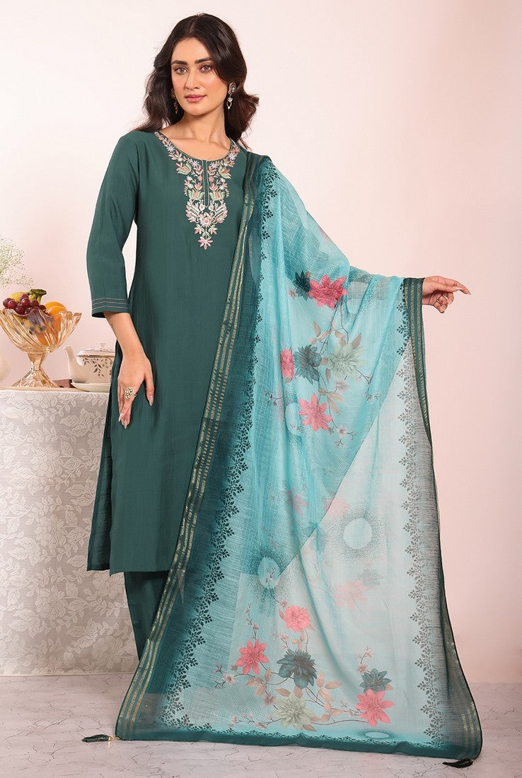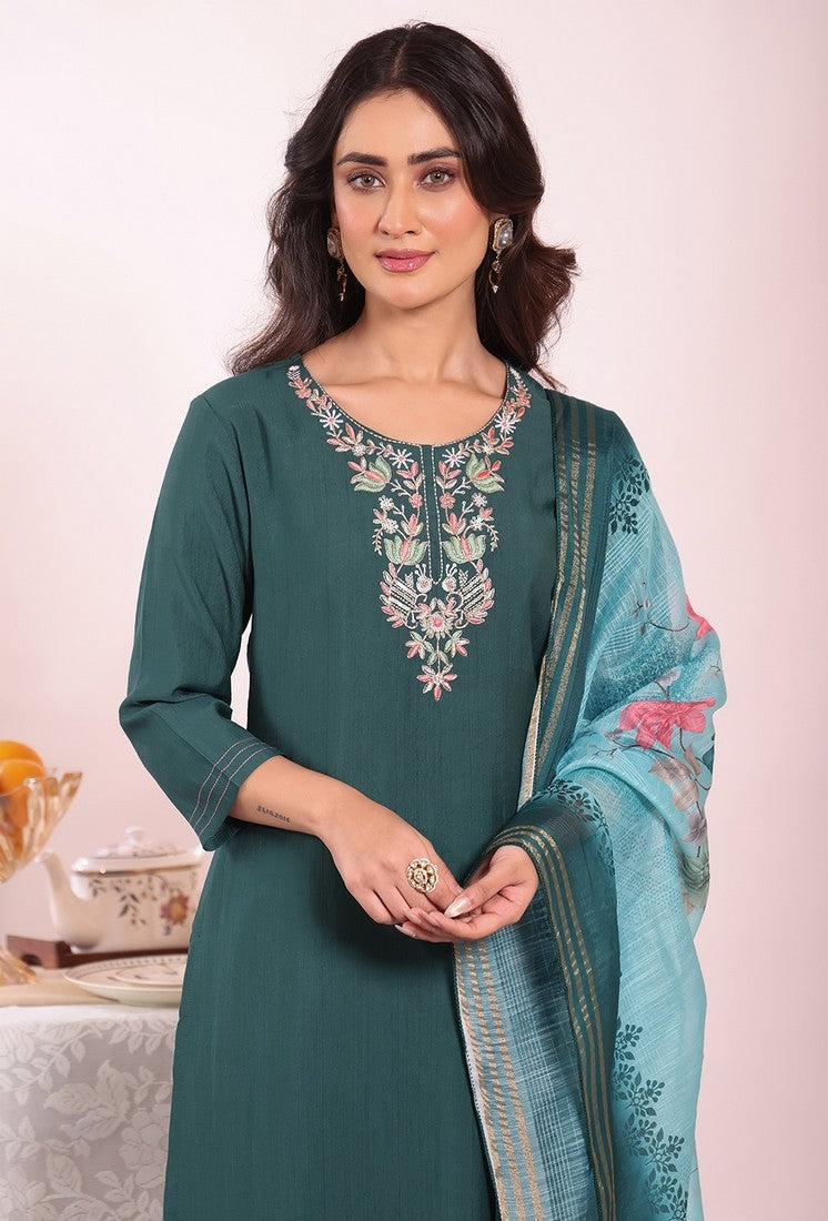 | Color | Top Color - Teal, Bottom Color - Teal, Dupatta Color - Teal |