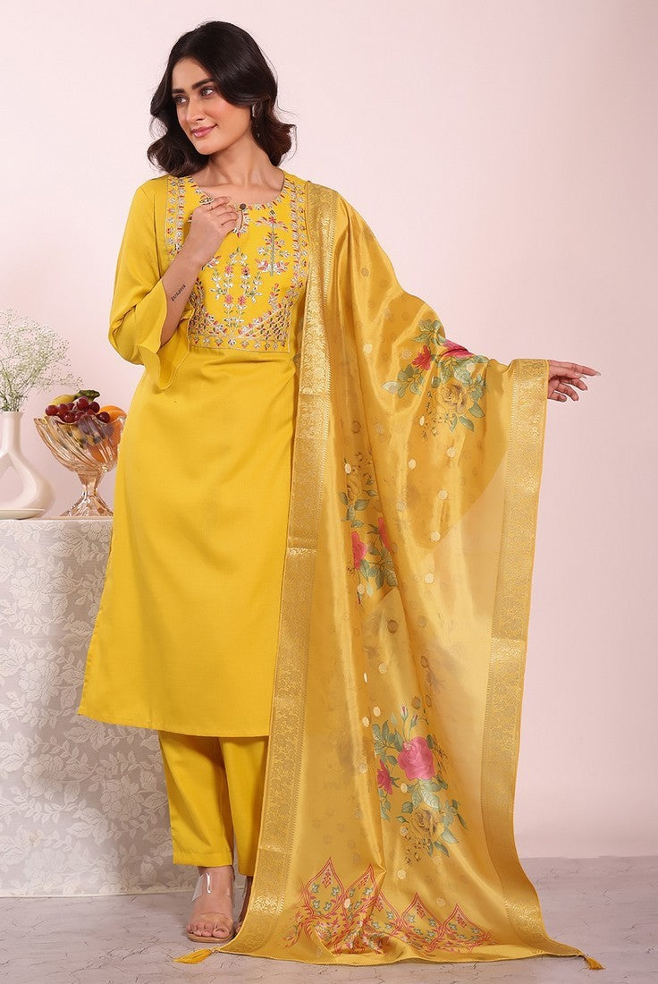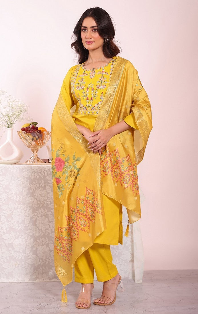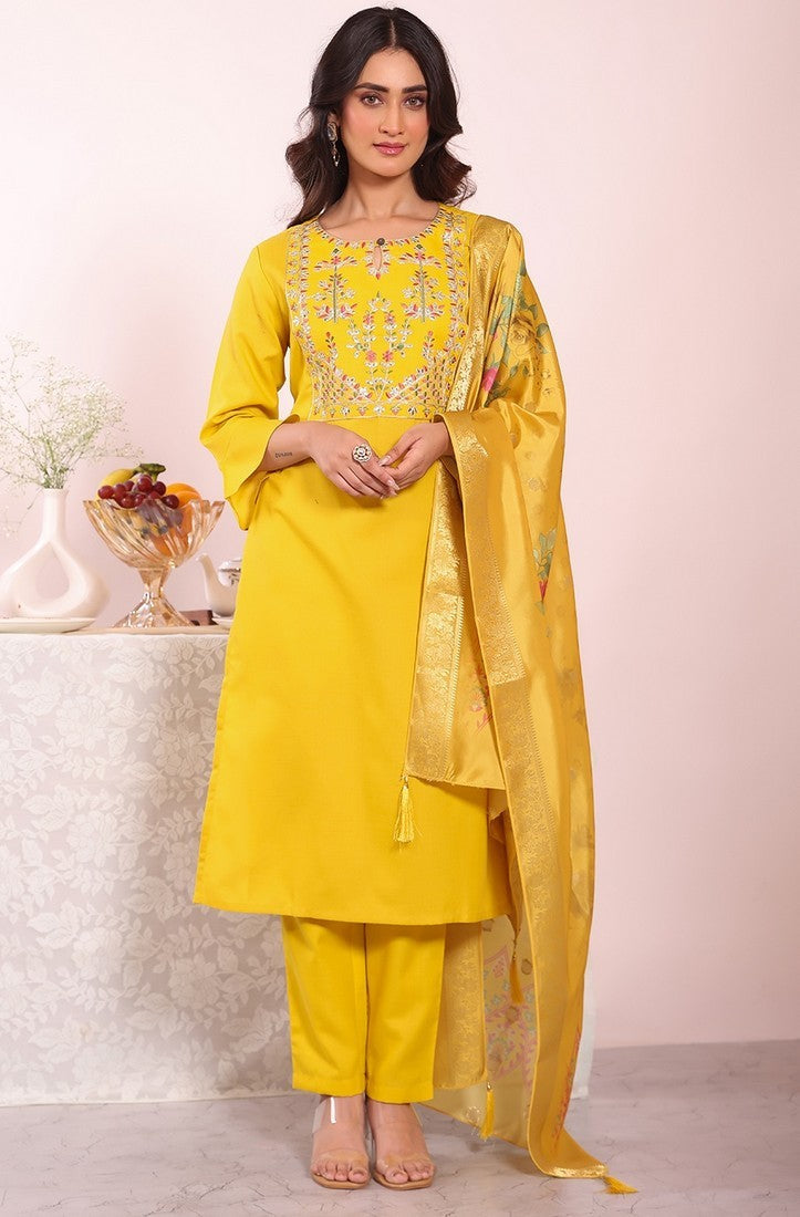Beautiful Yellow Color Silk Fabric Casual Suit