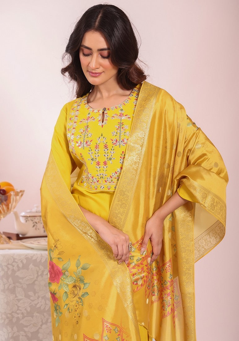 | Color | Top Color - Yellow, Bottom Color - Yellow, Dupatta Color - Yellow |