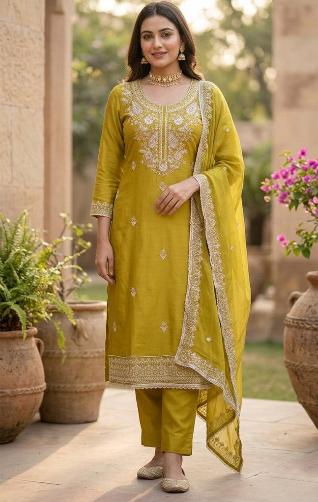 | Color | Top Color - Mustard, Bottom Color - Mustard, Dupatta Color - Mustard |