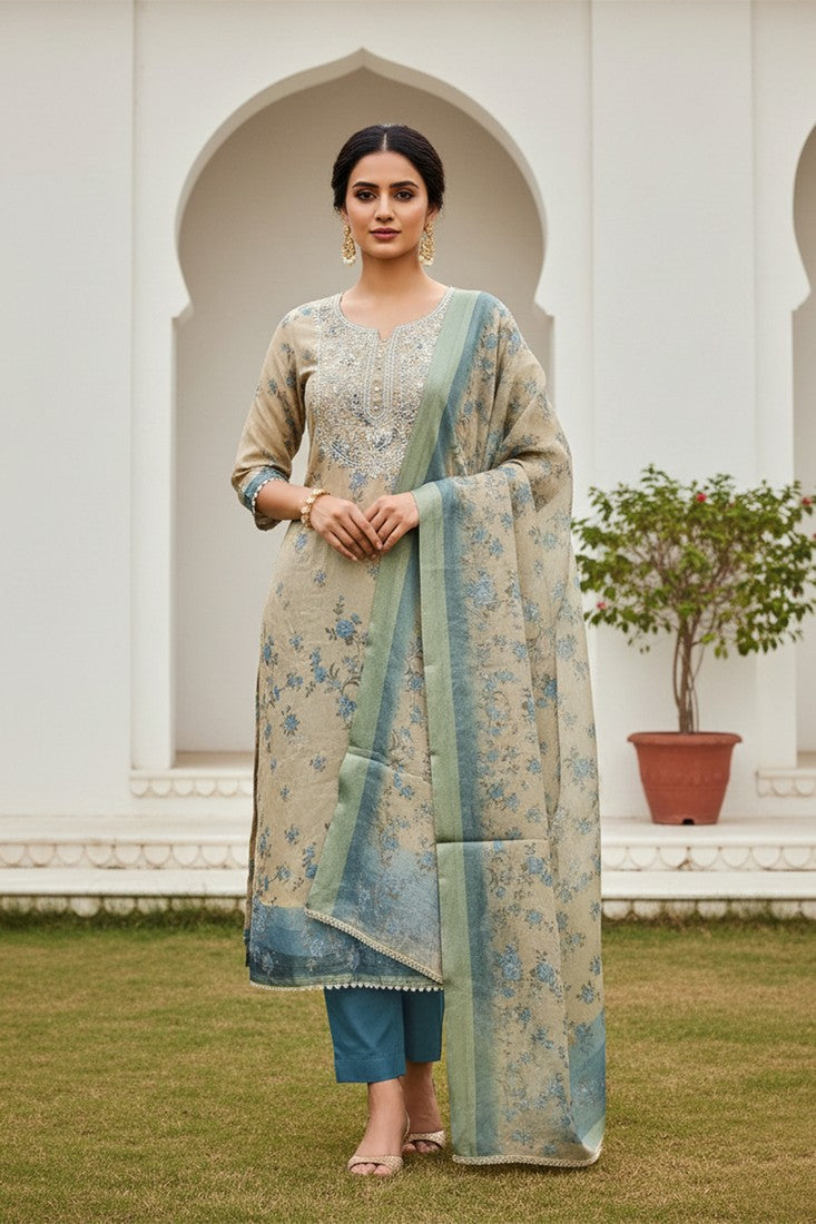 Attractive These Suit in Fine Colored Pair With Bottom And Dupatta. These Top Are Lilen Cotton And Dupatta Are Fabricated On Lilen Cotton Pair With Rayon Bottom. Its Beautified With Designer Printed, Hand Work.