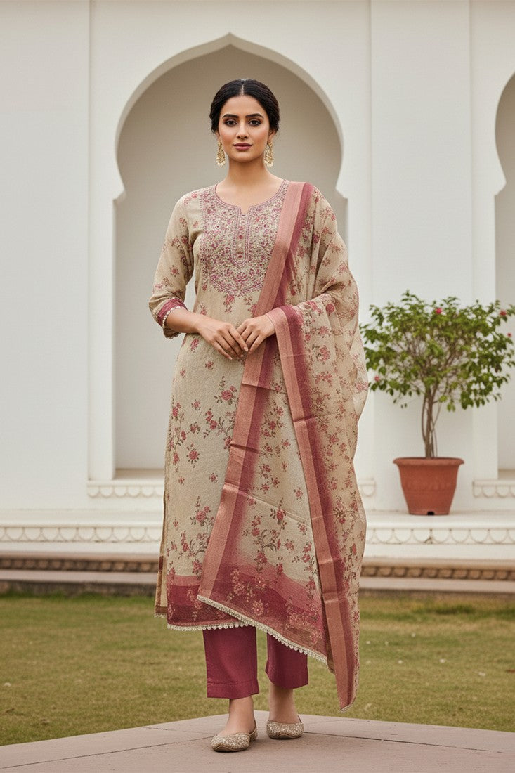 Attractive These Suit in Fine Colored Pair With Bottom And Dupatta. These Top Are Lilen Cotton And Dupatta Are Fabricated On Lilen Cotton Pair With Rayon Bottom. Its Beautified With Designer Printed, Hand Work.