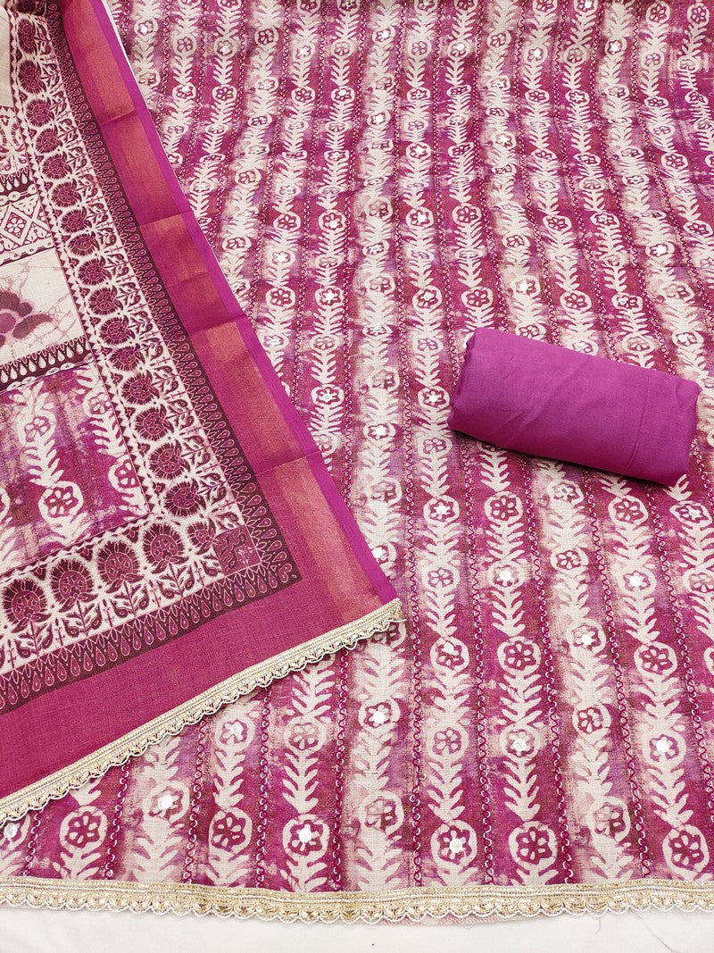 Attractive These Suit in Fine Colored Pair With Bottom And Dupatta. These Top Are Lilen Cotton And Dupatta Are Fabricated On Lilen Cotton Pair With Rayon Bottom. Its Beautified With Designer Printed, Hand Work.