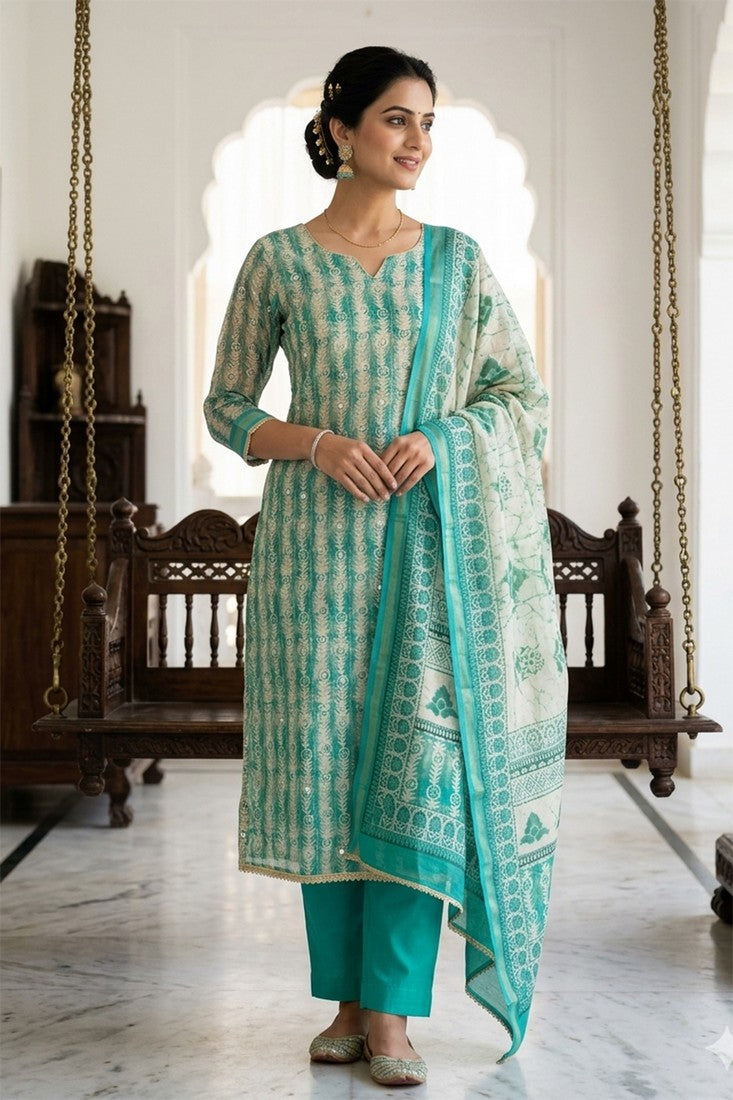 Lovely Turquoise Color Cotton Fabric Casual Suit