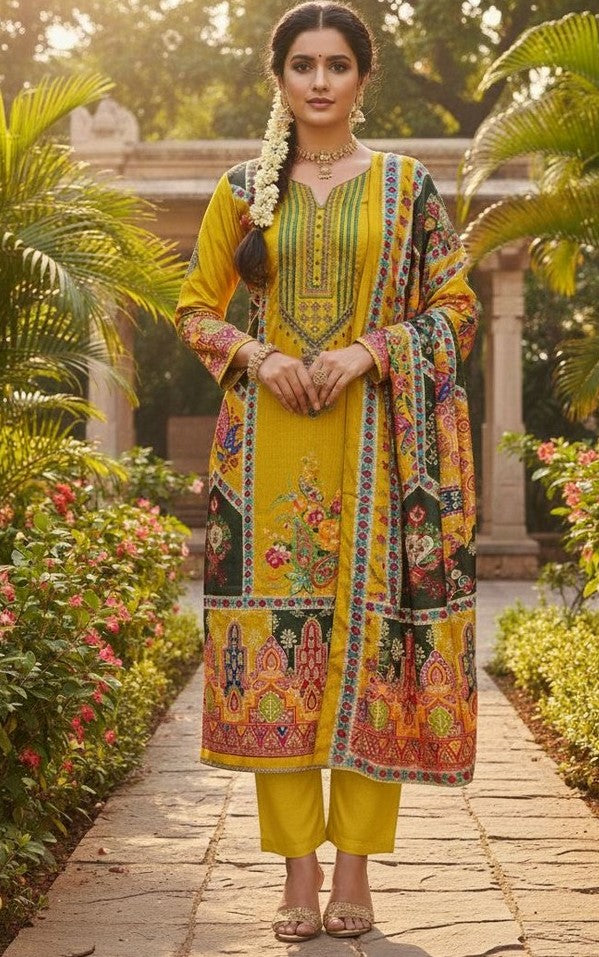 | Color | Top Color - Yellow, Bottom Color - Yellow, Dupatta Color - Yellow |