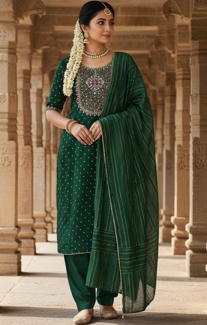 Color Top Color - Green, Bottom Color - Green, Dupatta Color - Green