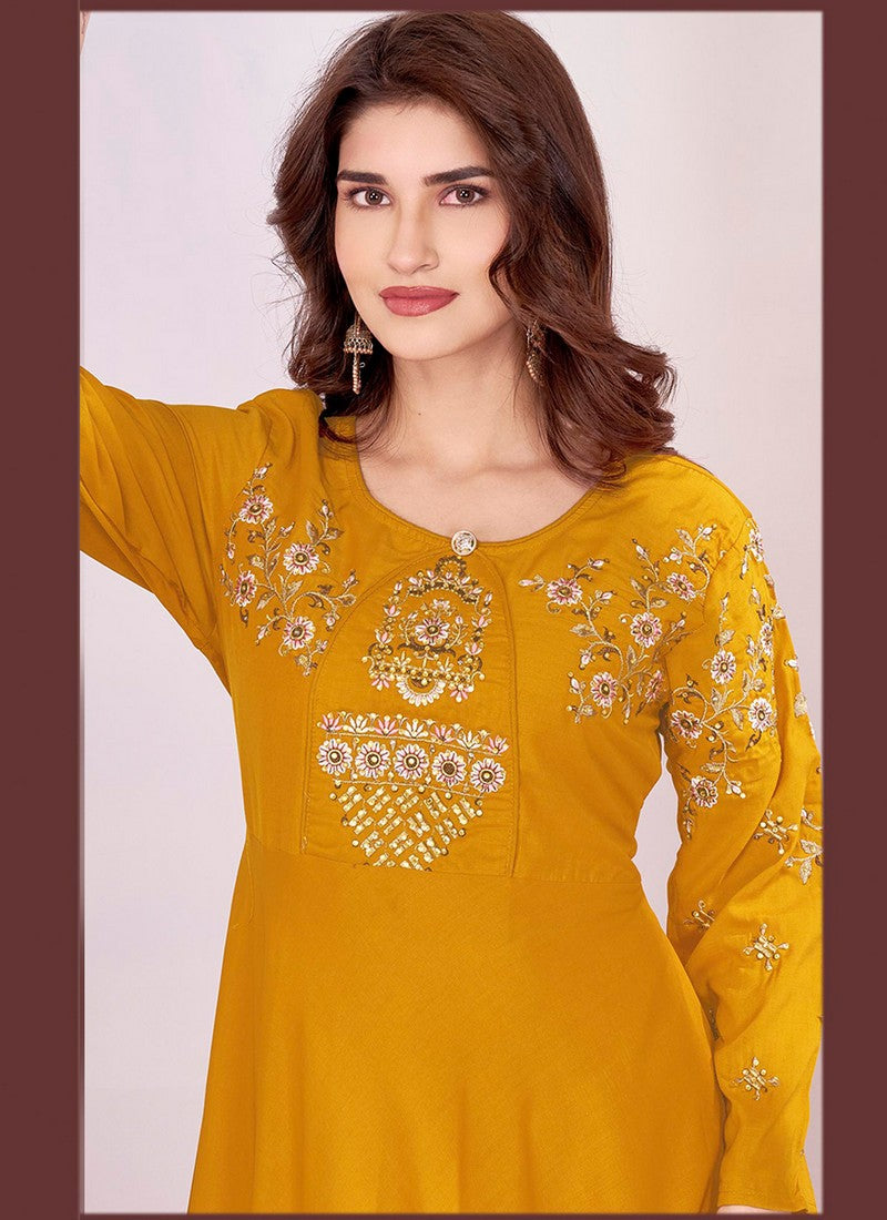 Classy Yellow Color Muslin Fabric Designer Kurti
