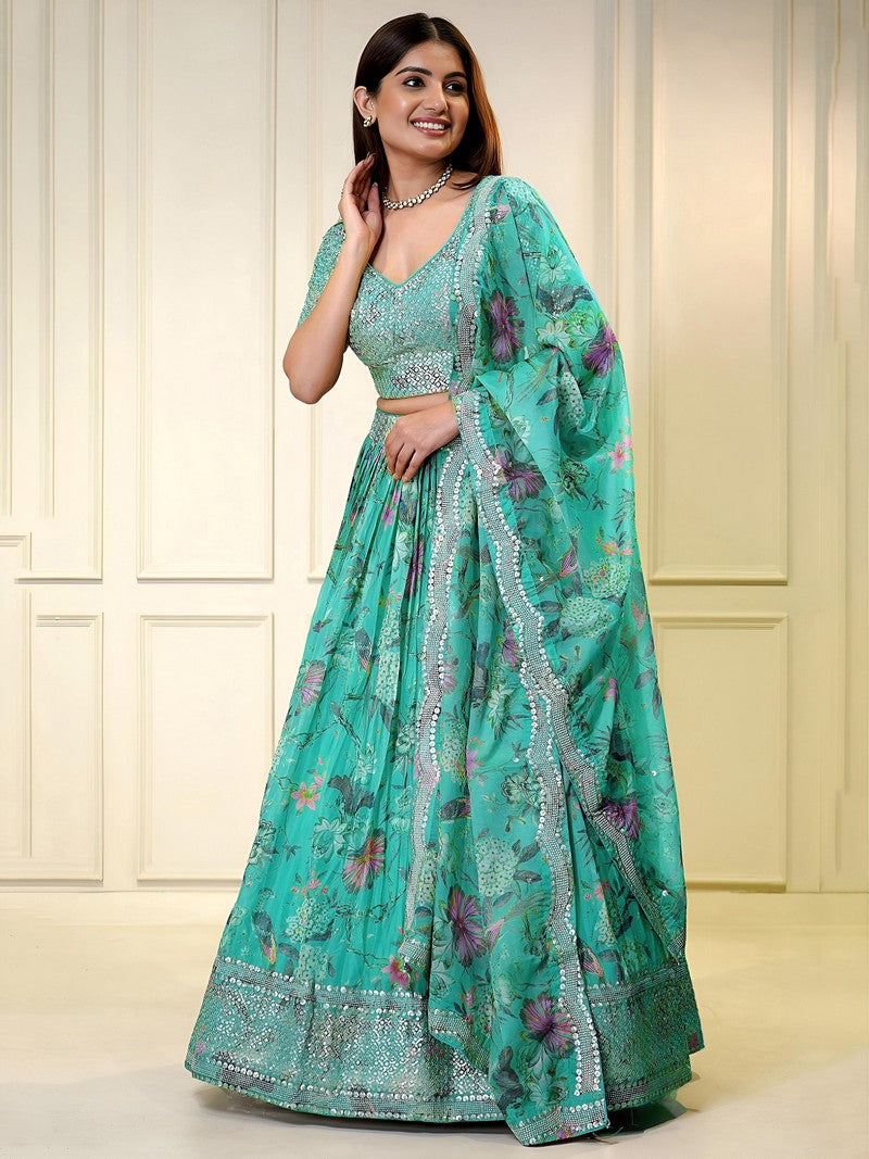 Alluring Aqua Color Organza Fabric Designer Lehenga