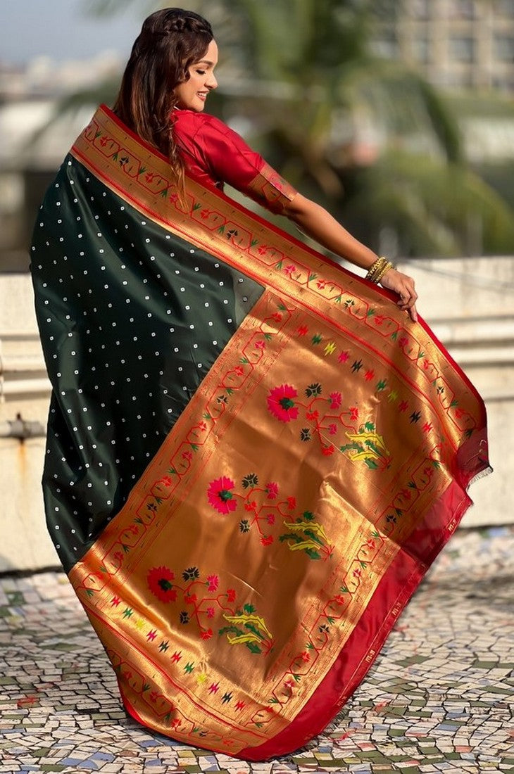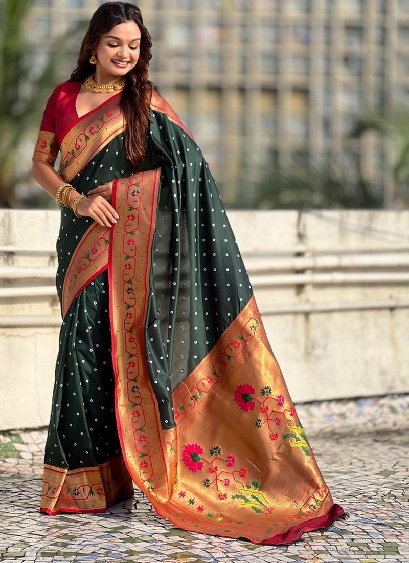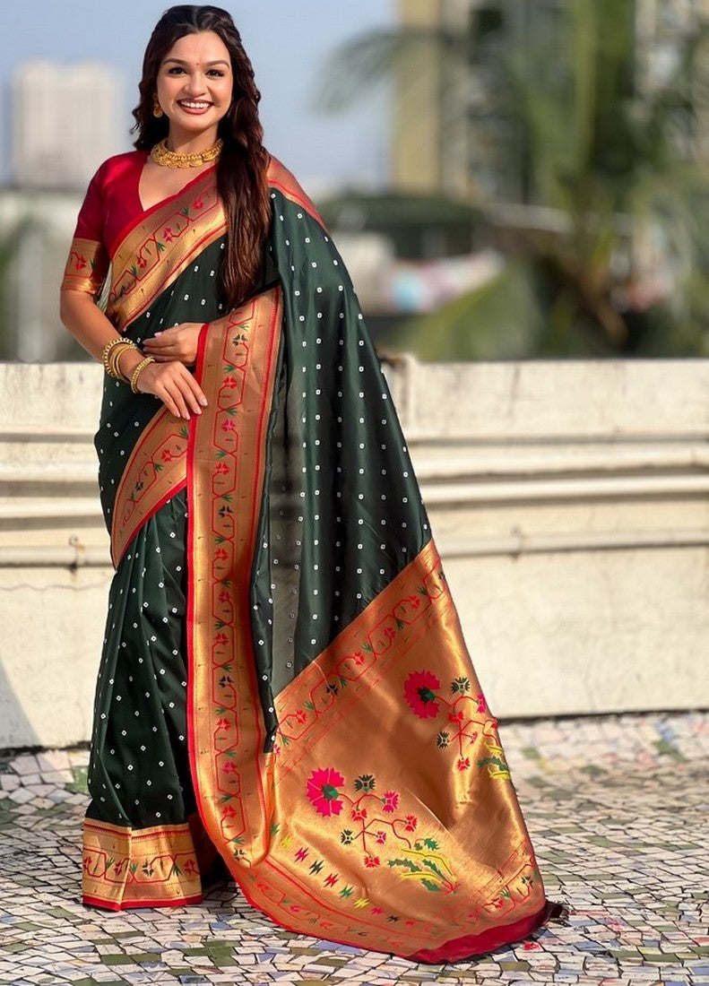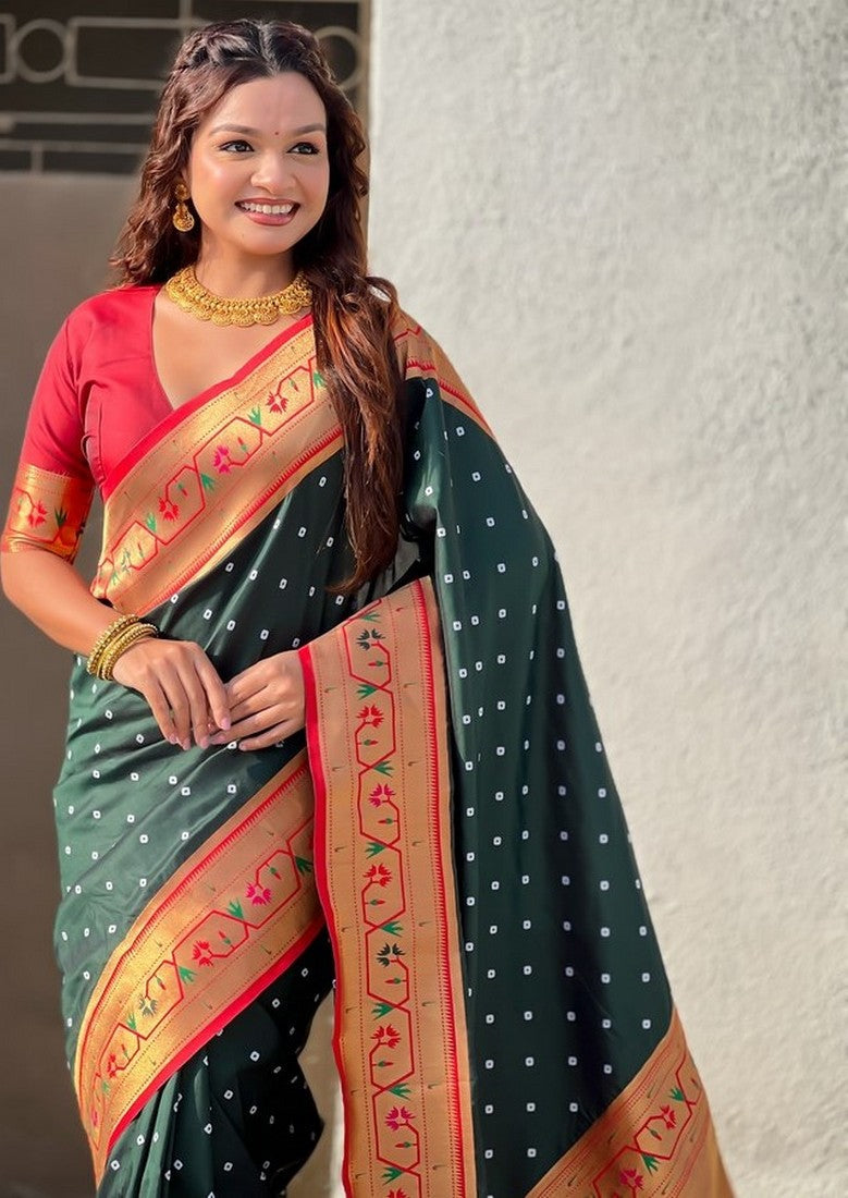 Grab These Party Wear Saree in Fine Colored.These Saree And Blouse is Fabricated On Soft Silk.Its Beautified With Weaving Bandhani Jari, Rich Paithani Meenakari Pallu Designer.