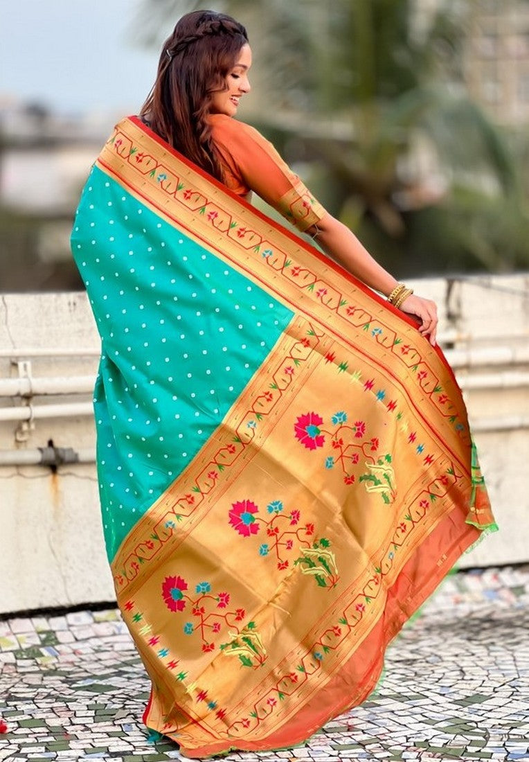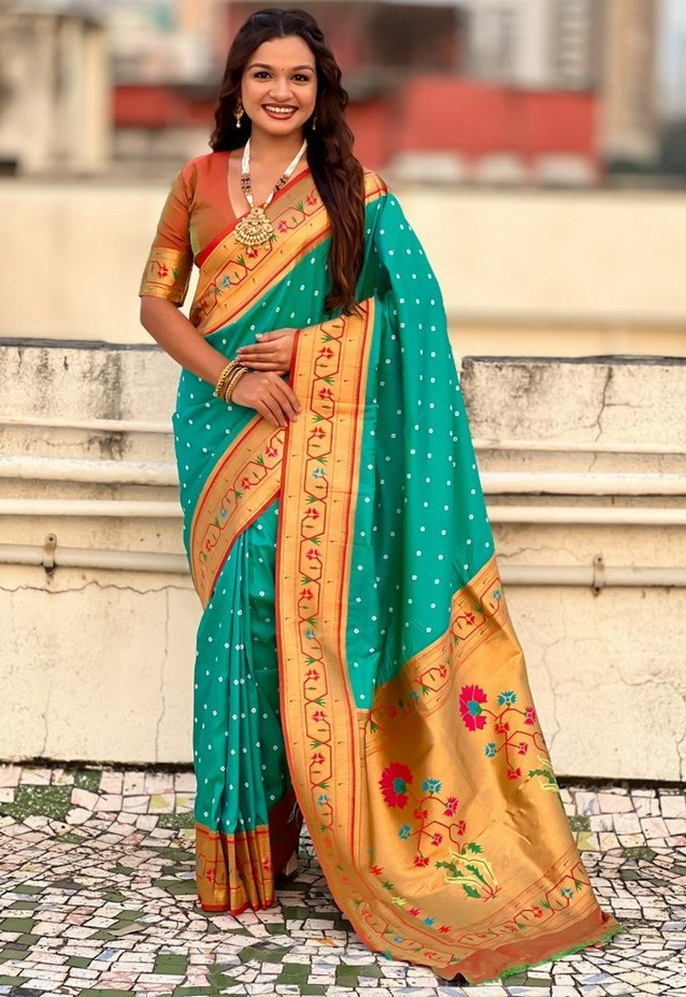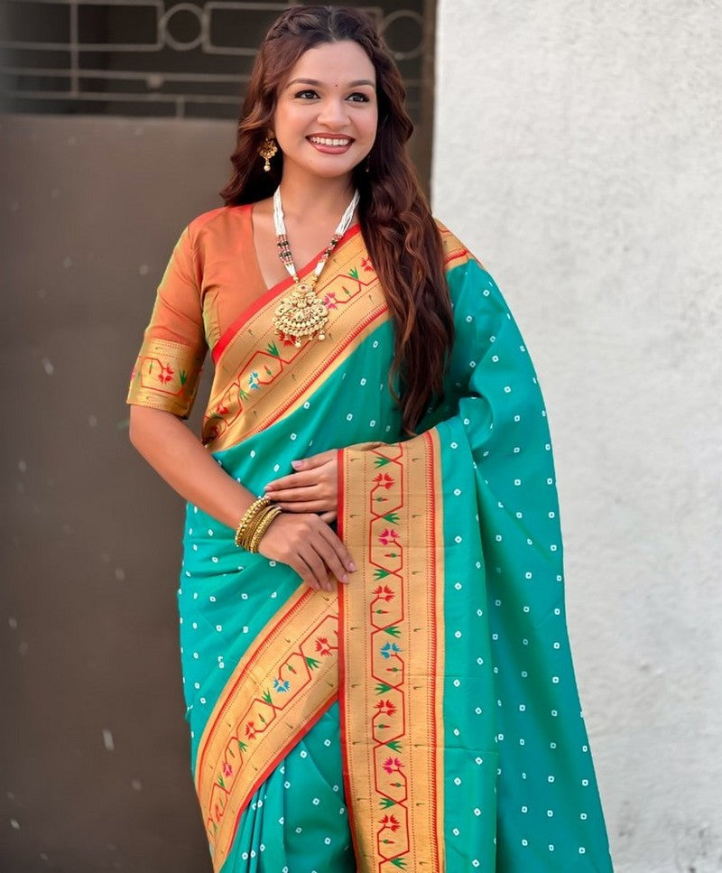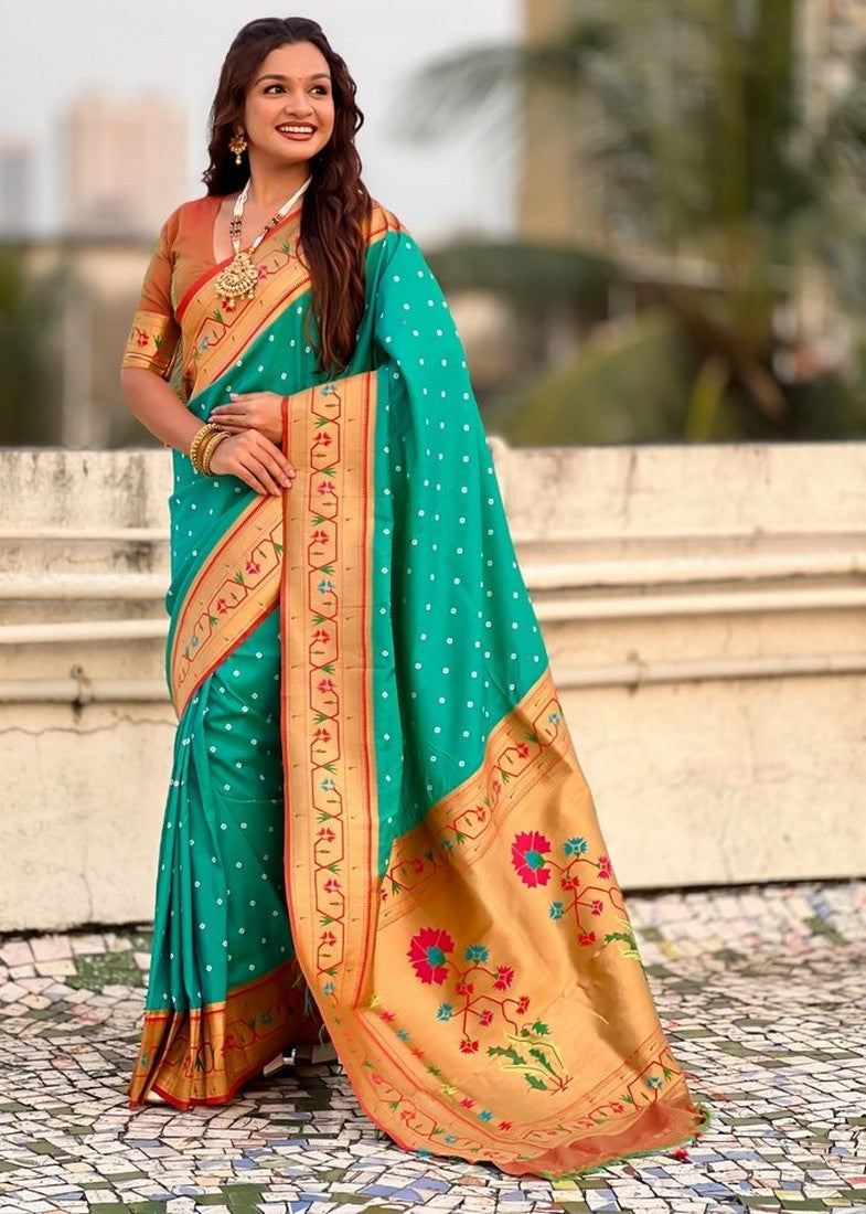 Grab These Party Wear Saree in Fine Colored.These Saree And Blouse is Fabricated On Soft Silk.Its Beautified With Weaving Bandhani Jari, Rich Paithani Meenakari Pallu Designer.