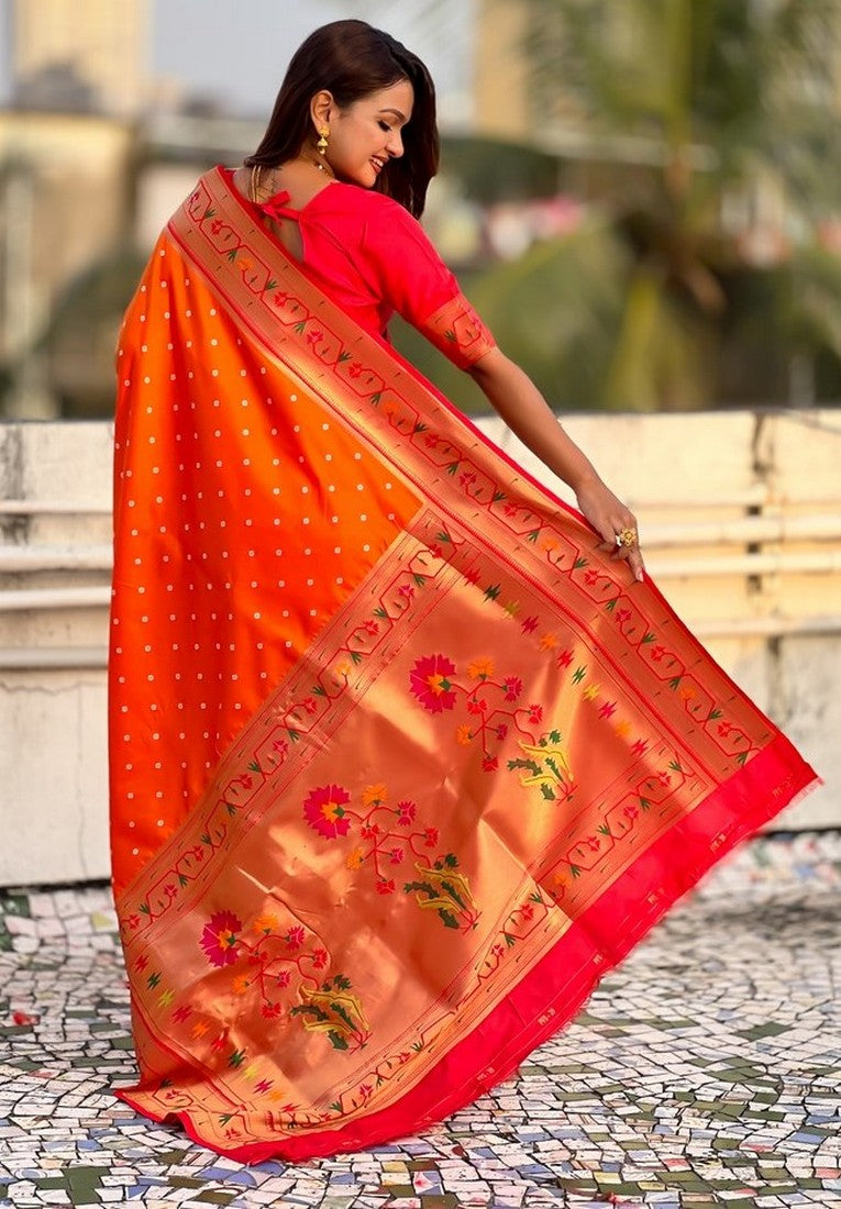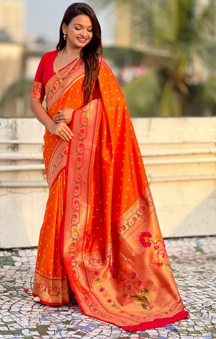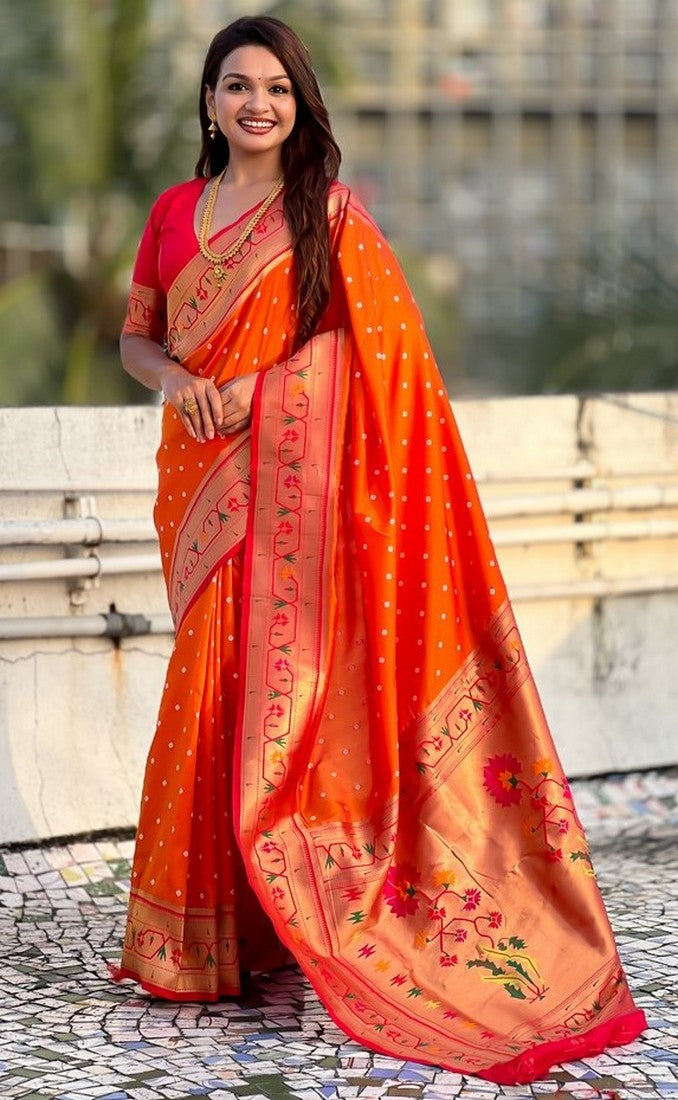 Grab These Party Wear Saree in Fine Colored.These Saree And Blouse is Fabricated On Soft Silk.Its Beautified With Weaving Bandhani Jari, Rich Paithani Meenakari Pallu Designer.