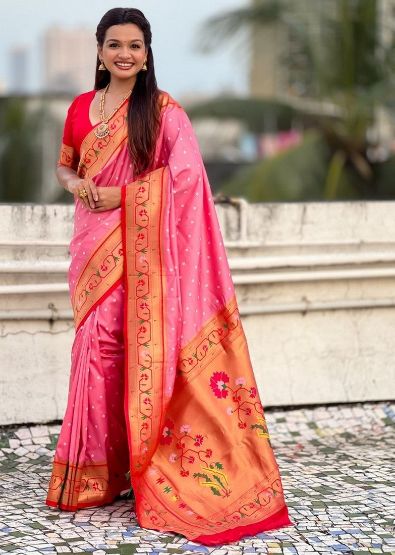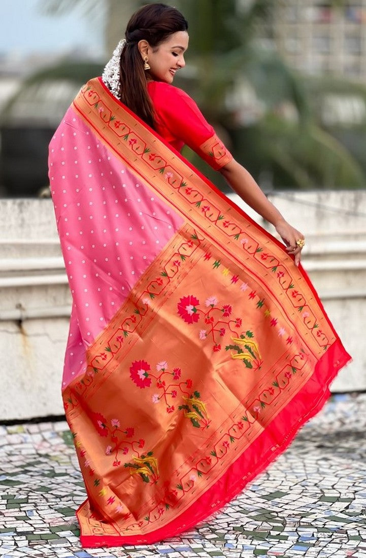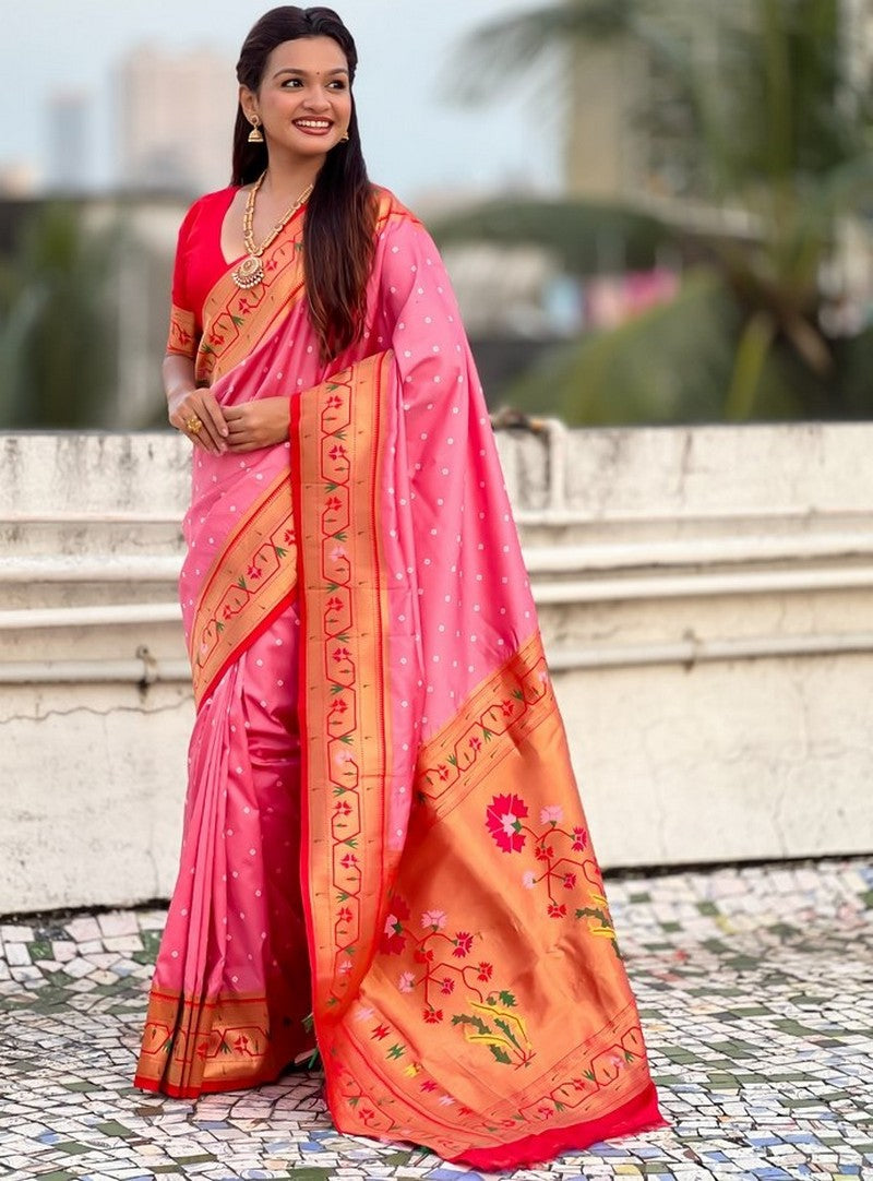Grab These Party Wear Saree in Fine Colored.These Saree And Blouse is Fabricated On Soft Silk.Its Beautified With Weaving Bandhani Jari, Rich Paithani Meenakari Pallu Designer.
