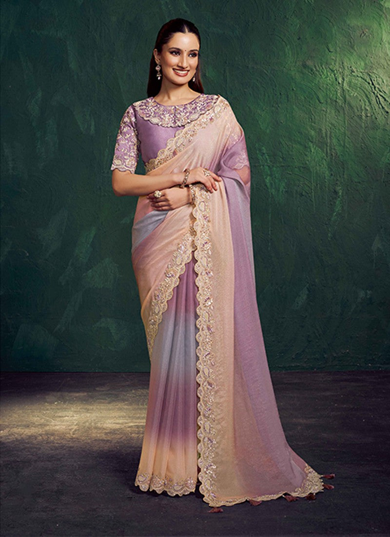 Beautiful Purple Color Georgette Fabric Designer Saree