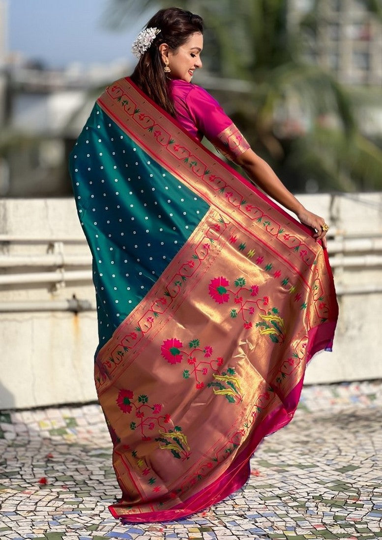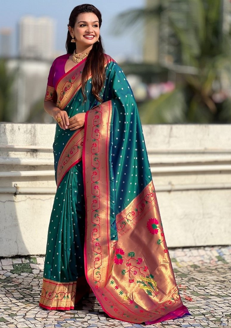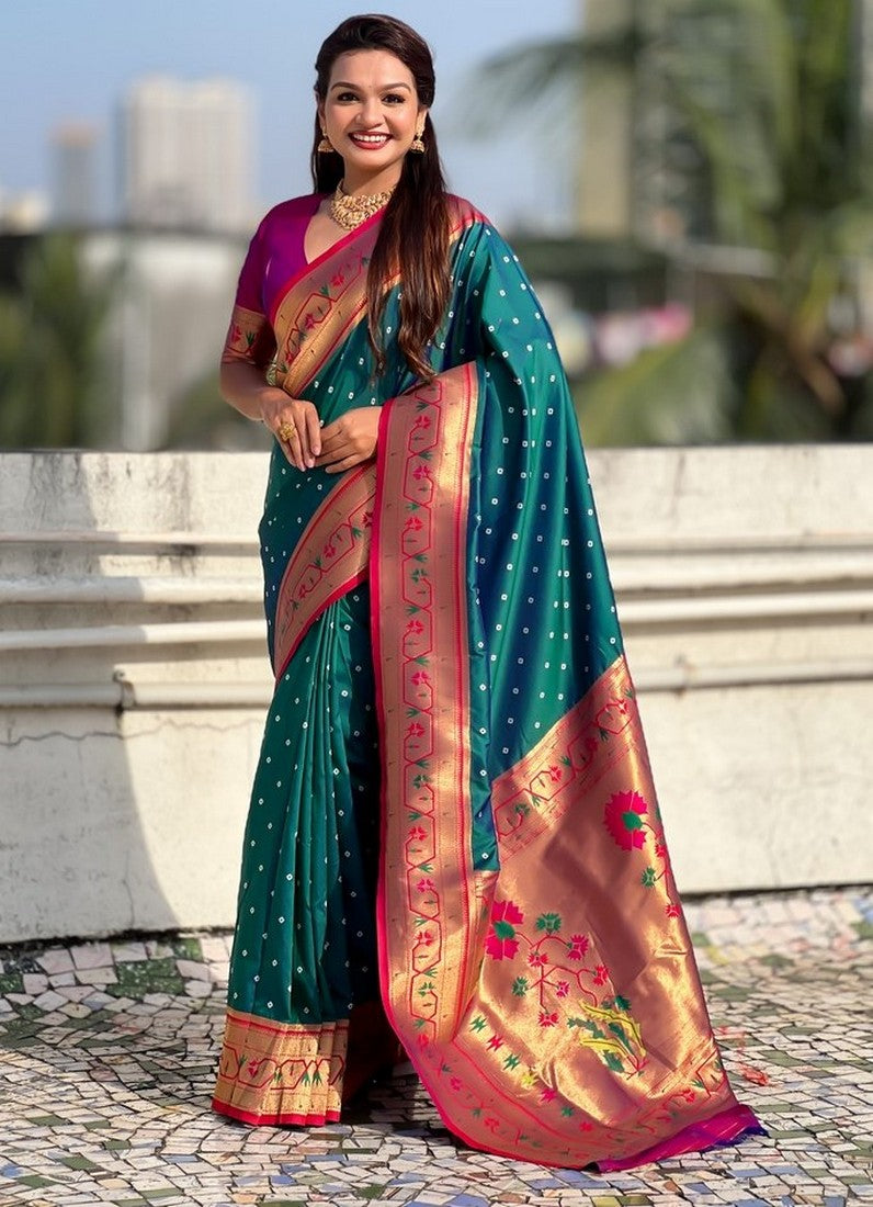 Grab These Party Wear Saree in Fine Colored.These Saree And Blouse is Fabricated On Soft Silk.Its Beautified With Weaving Bandhani Jari, Rich Paithani Meenakari Pallu Designer.