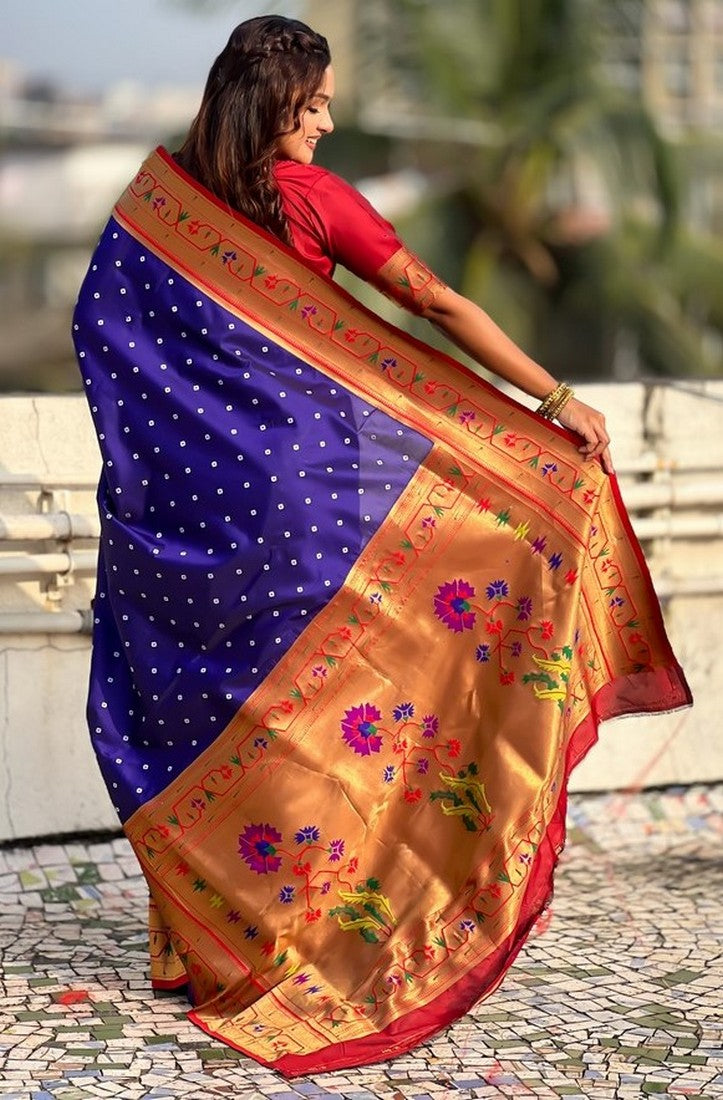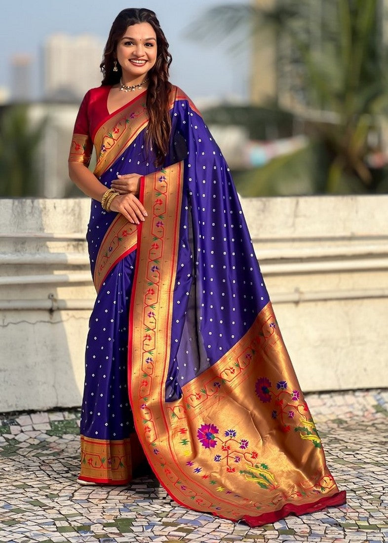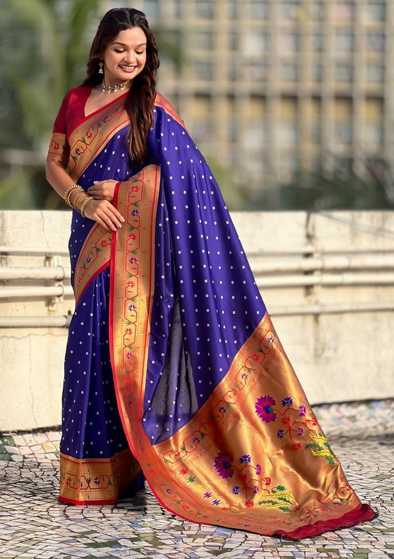 Grab These Party Wear Saree in Fine Colored.These Saree And Blouse is Fabricated On Soft Silk.Its Beautified With Weaving Bandhani Jari, Rich Paithani Meenakari Pallu Designer.