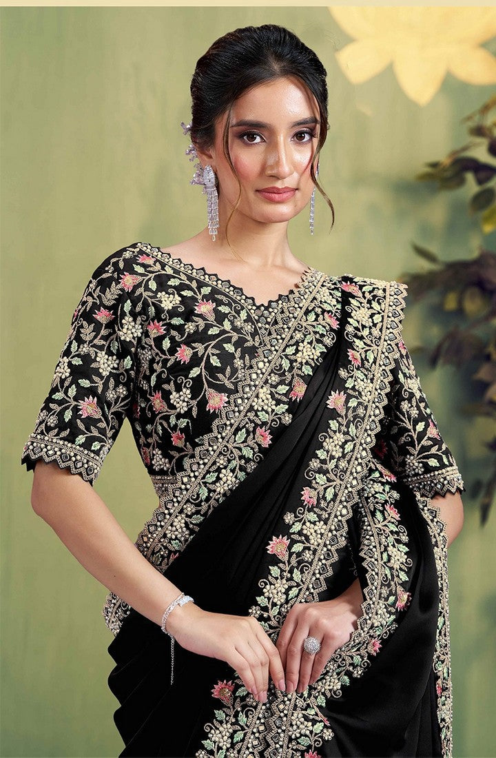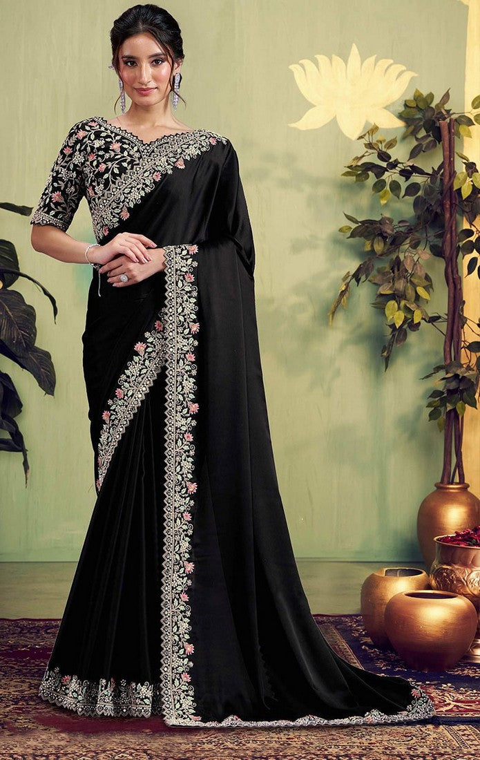 Look Attractive These Designer Party Wear Fancy Saree in Fine Colored.These Saree Are Satin Silk And Blouse Japan Satin Silk is Fabricated.Its Beautified Fancy Designer Embroidery, Hand Work.