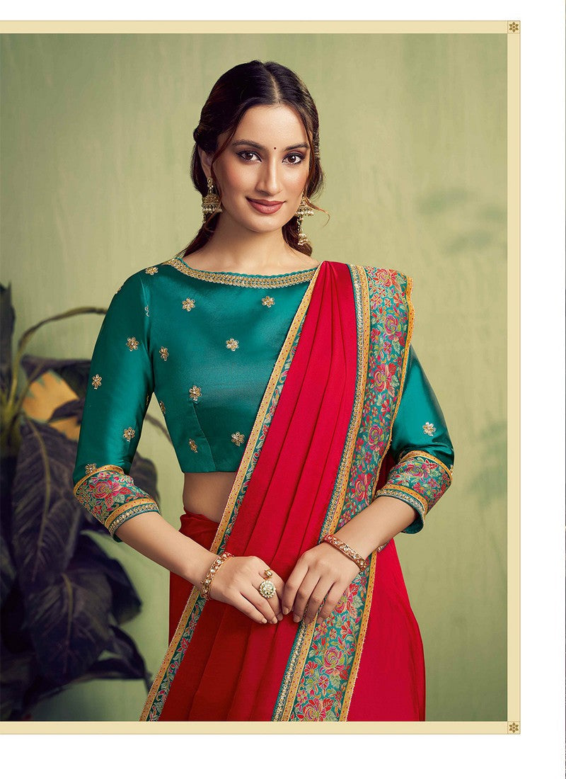 | Color | Saree Color - Red, Blouse Color - Teal |
