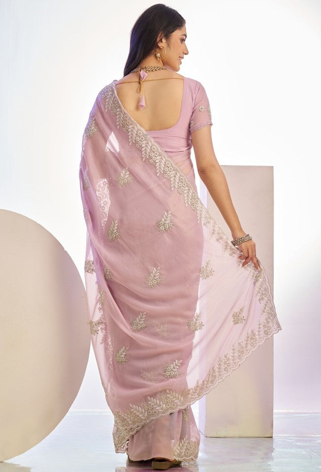 Wonderful Pink Color Tissue Fabric Designer Saree