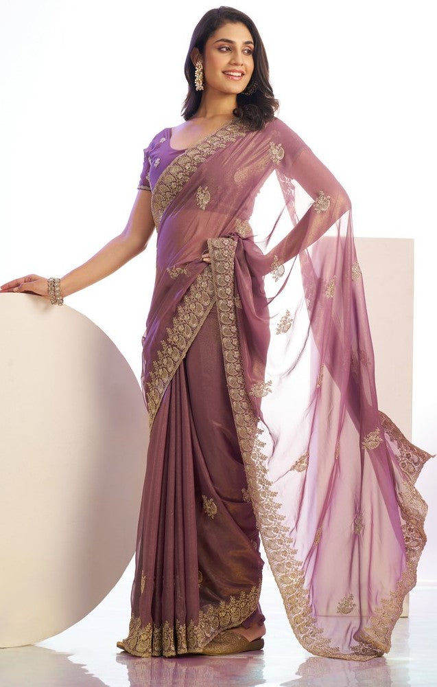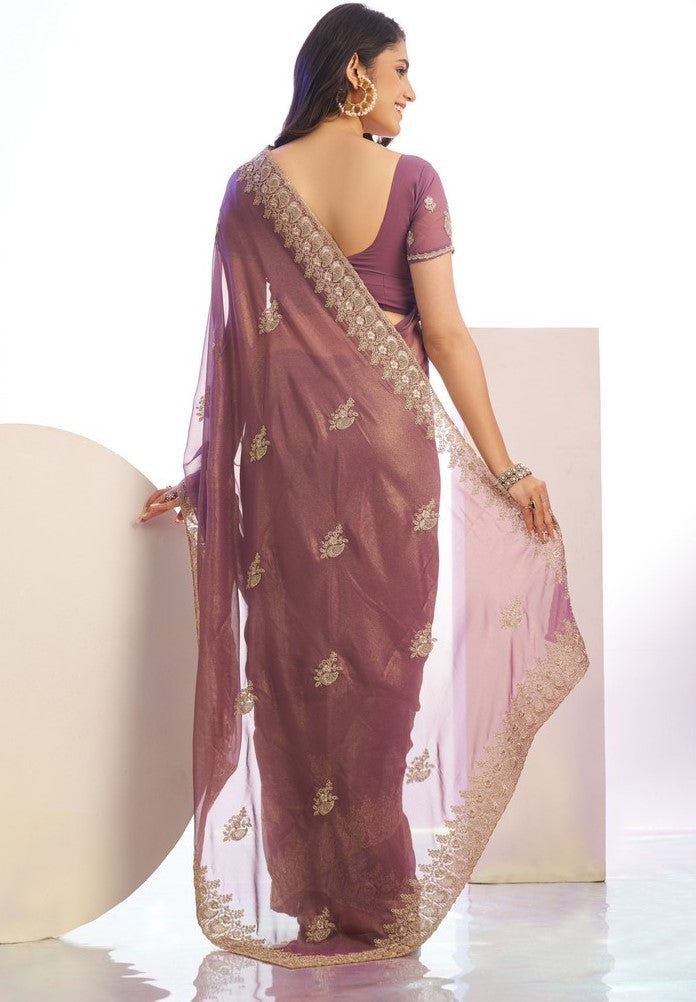 Wonderful Wine Color Tissue Fabric Designer Saree