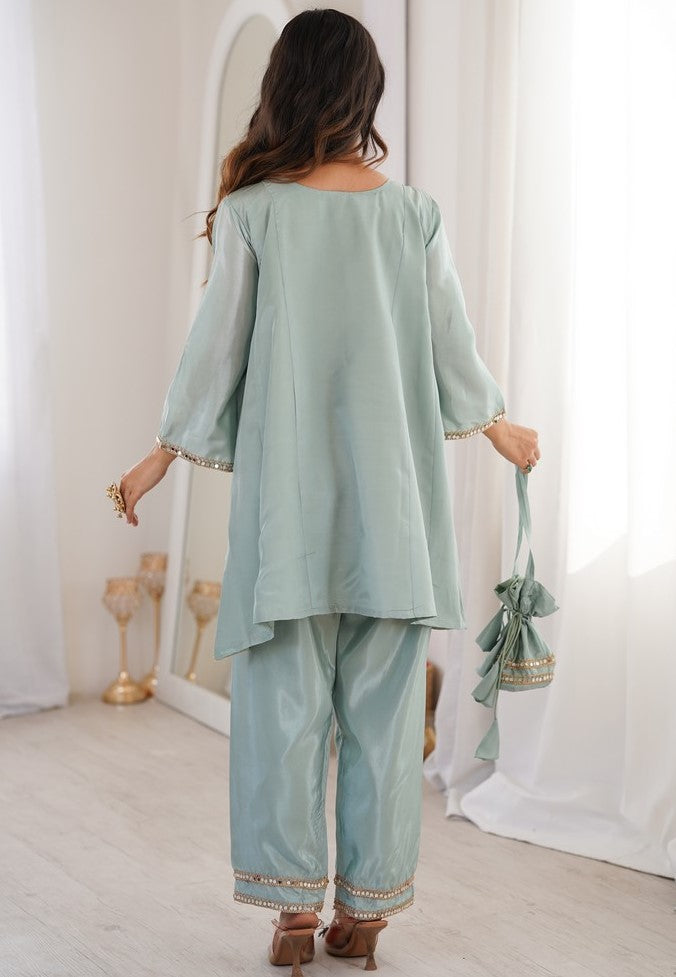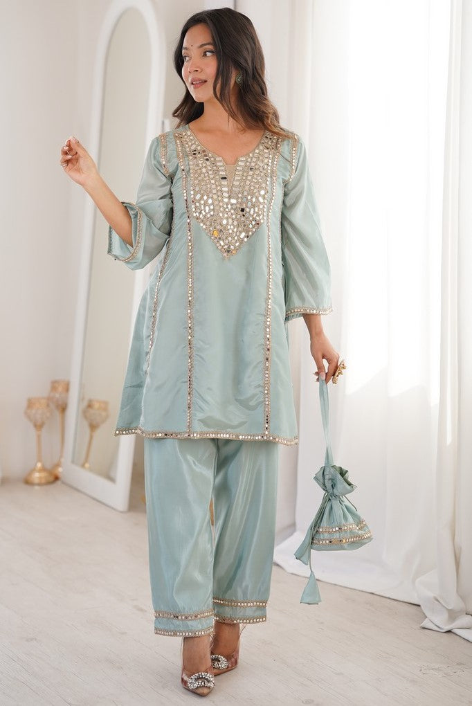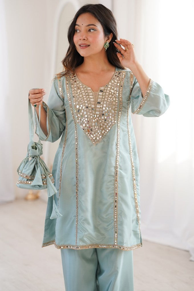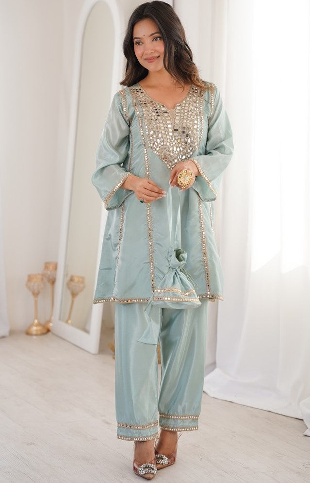 Amazing Aqua Color Silk Fabric Designer Suit