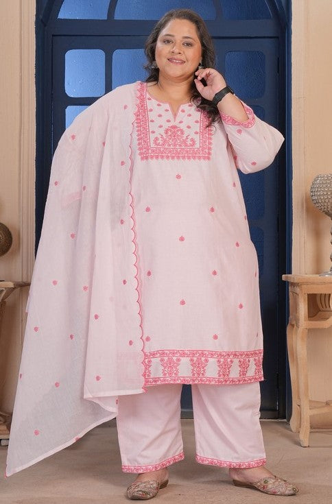 Grab These Beautiful Looking Readymade Plus Size Suits. These Top And Bottom Are Cotton And Dupatta Are Cotton Fabricated. Its Beautified With Disigner Embroidery Work.