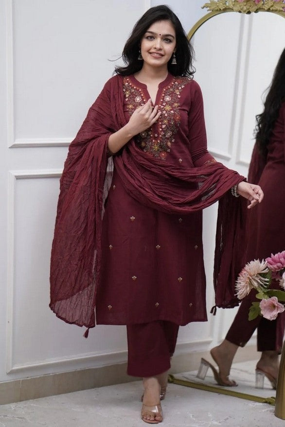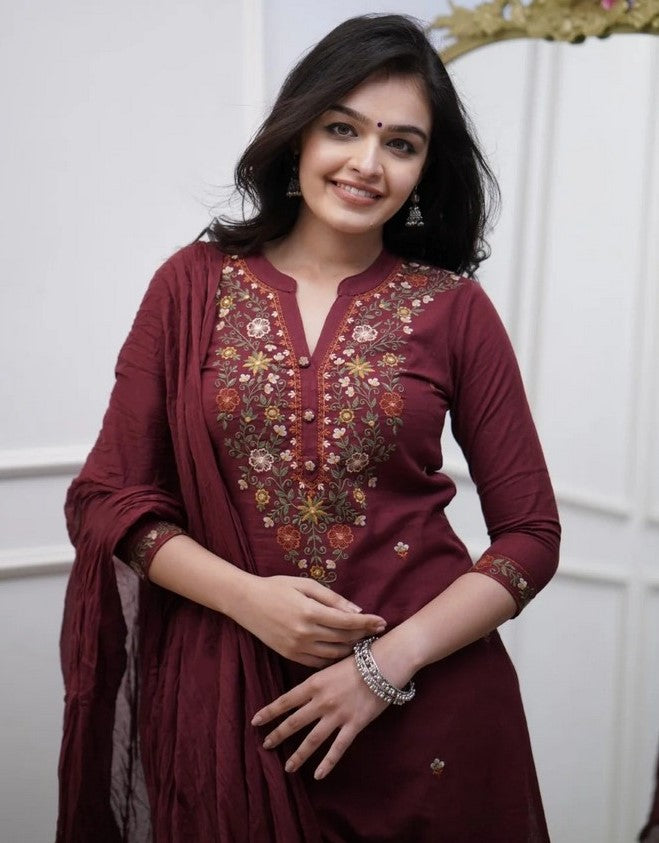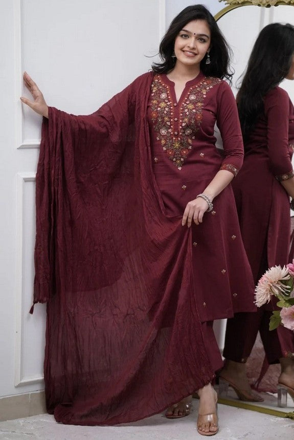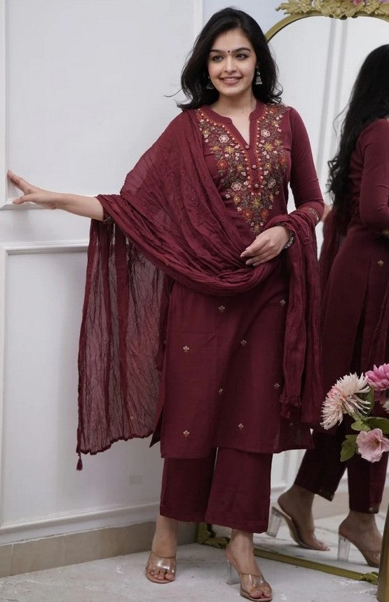 | Color | Top Color - Maroon, Bottom Color - Maroon, Dupatta Color - Maroon |