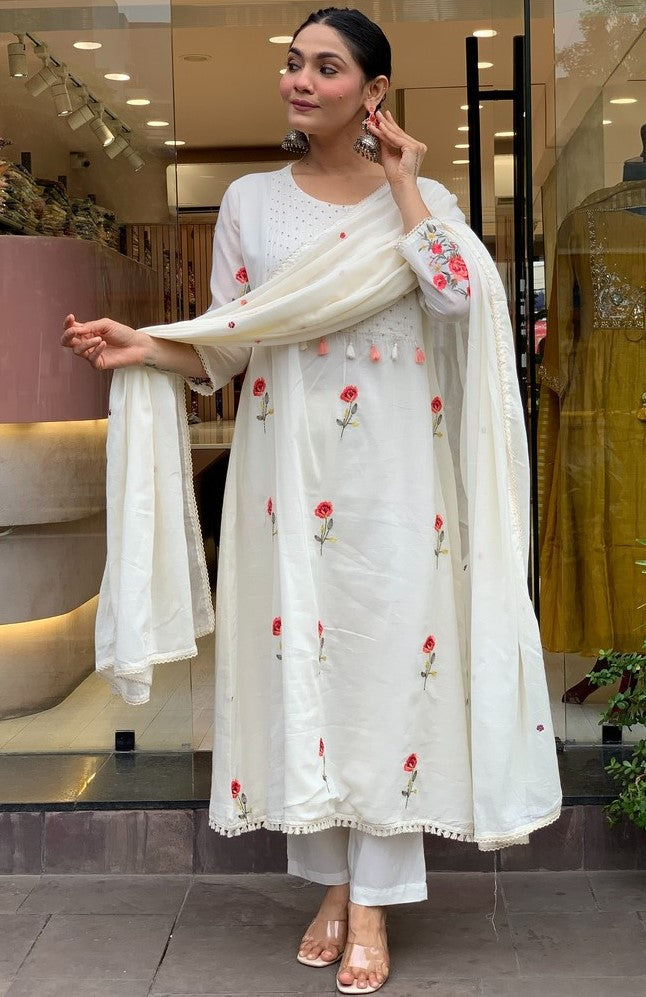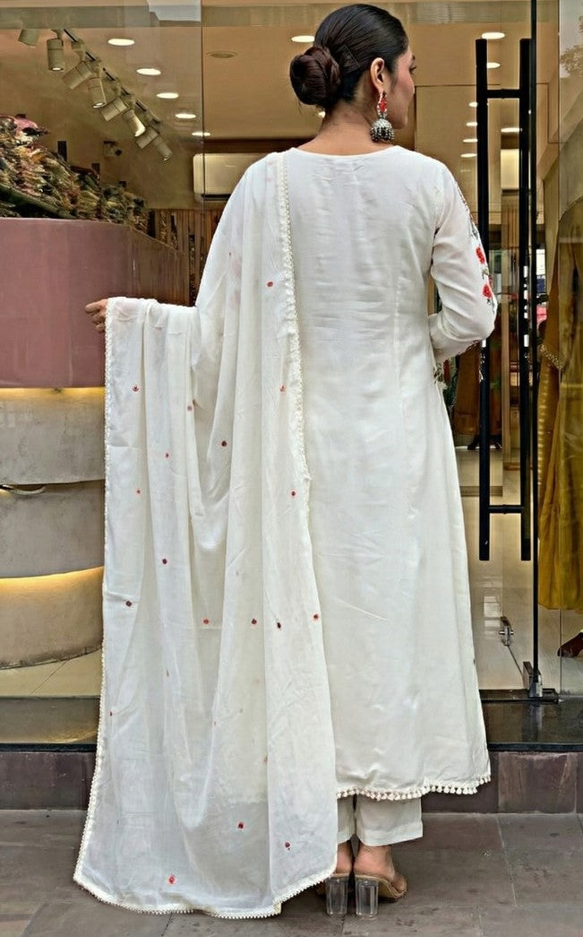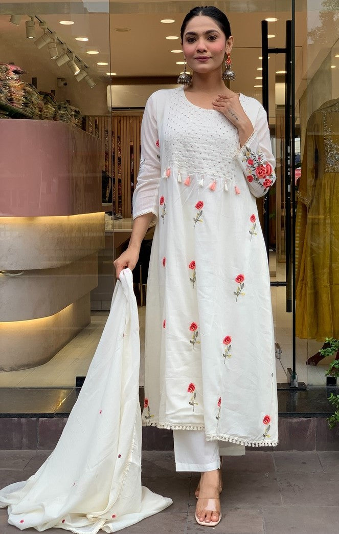 Angelic White Color Chanderi Fabric Designer Suit