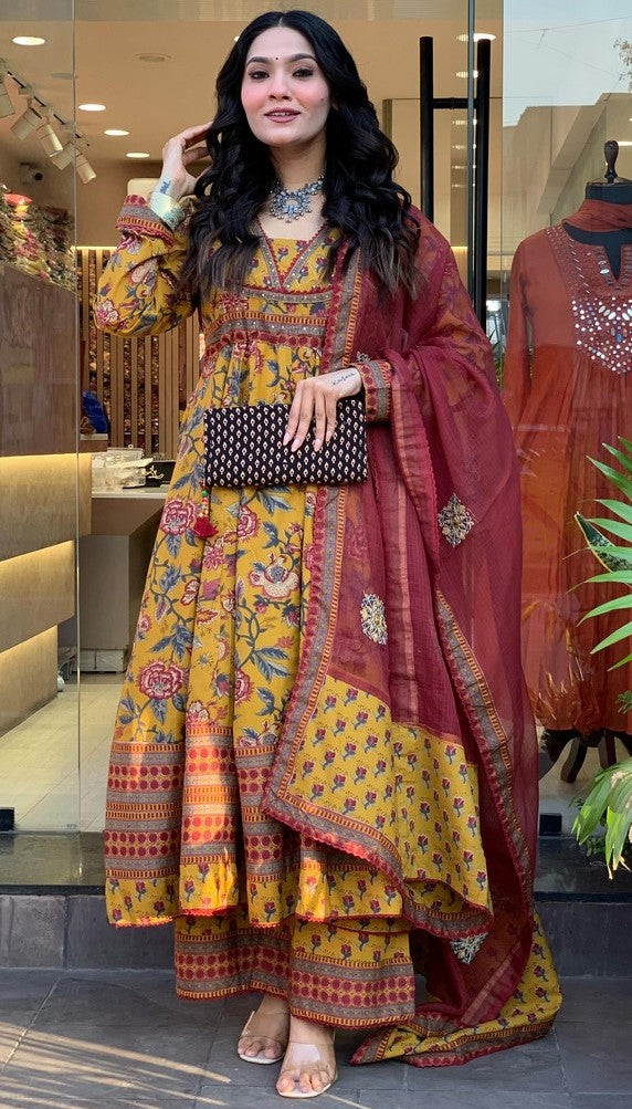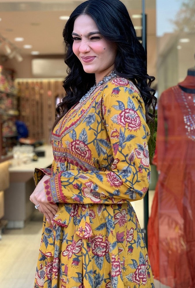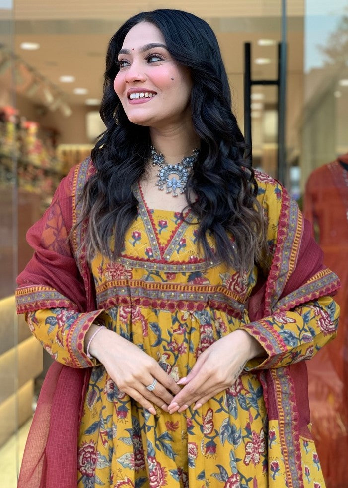 Angelic Yellow Color Cotton Fabric Designer Suit