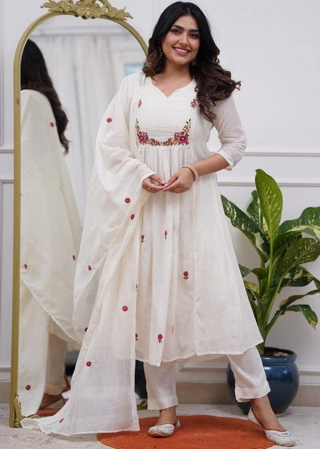 Beautiful Cream Color Chanderi Fabric Designer Suit