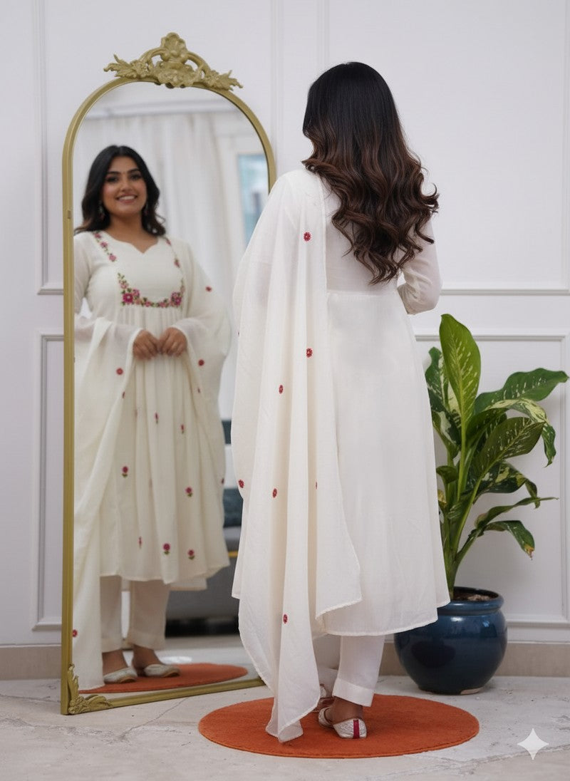 | Color | Top Color - Cream, Bottom Color - Cream, Dupatta Color - Cream |