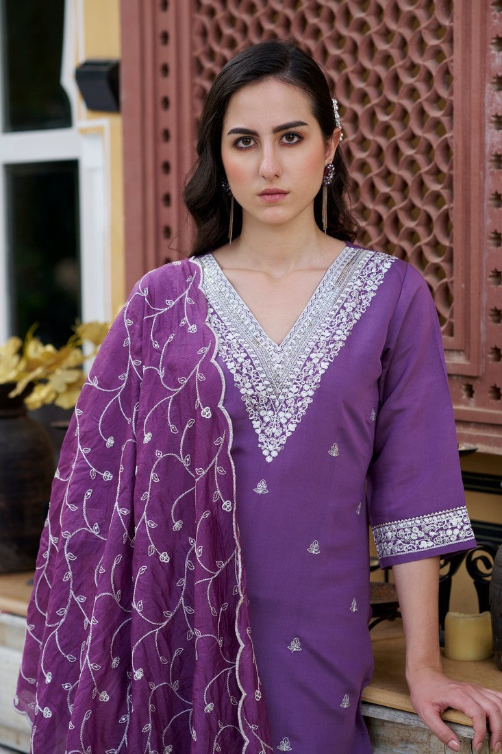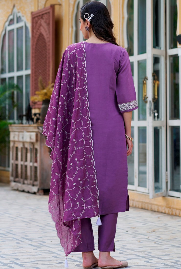 Beautiful Purple Color Silk Fabric Designer Suit
