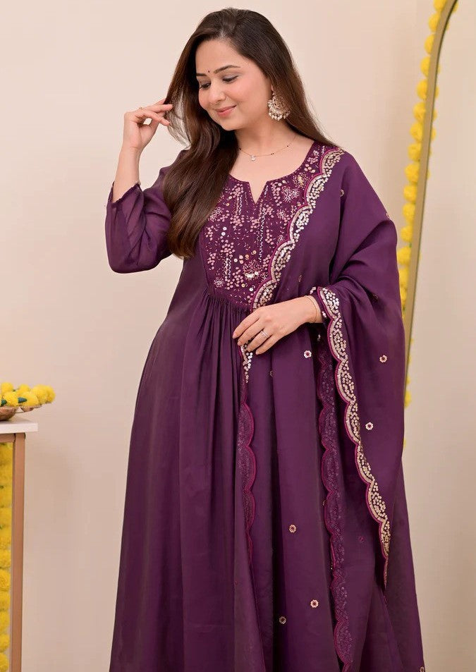 Beautiful Wine Color Chanderi Fabric Designer Suit