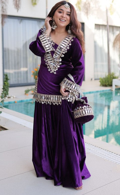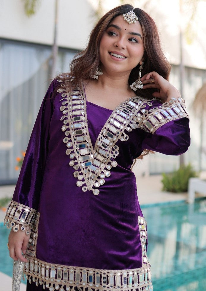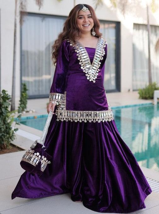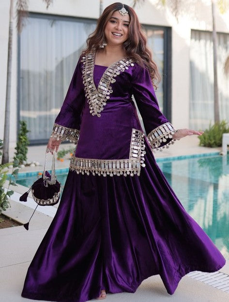 Divine Purple Color Velvet Fabric Designer Suit