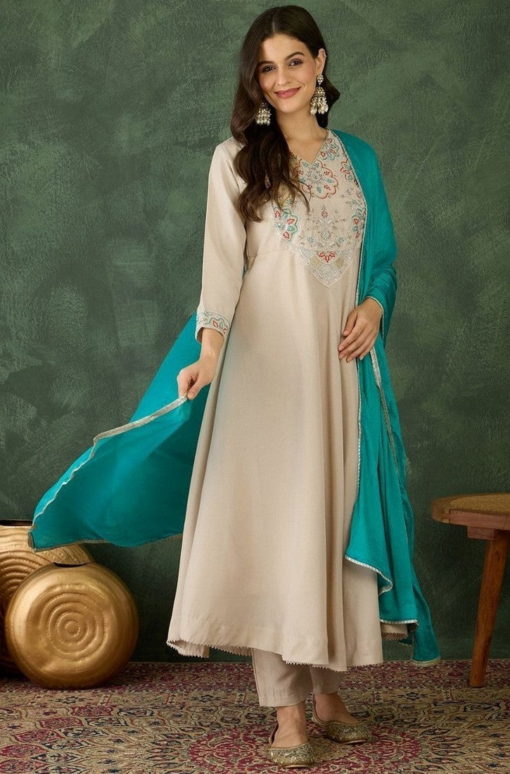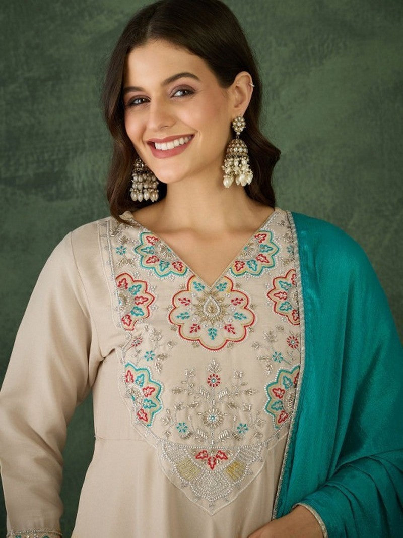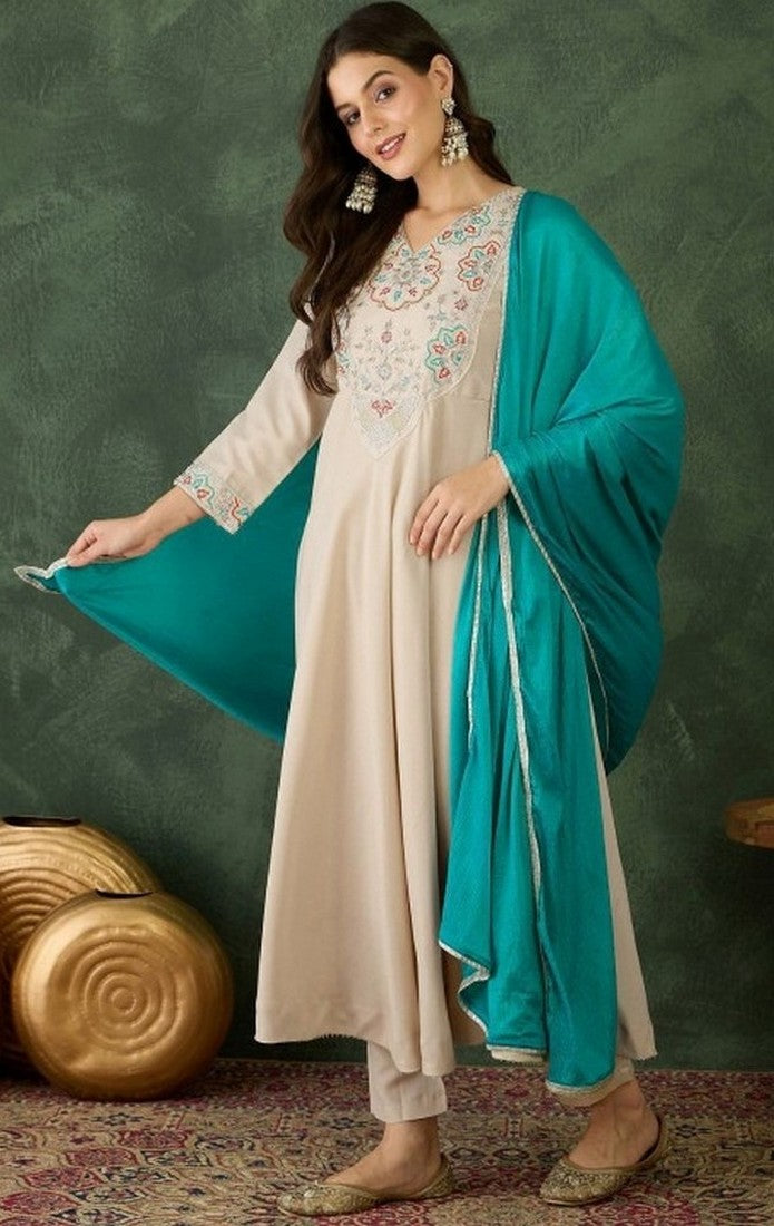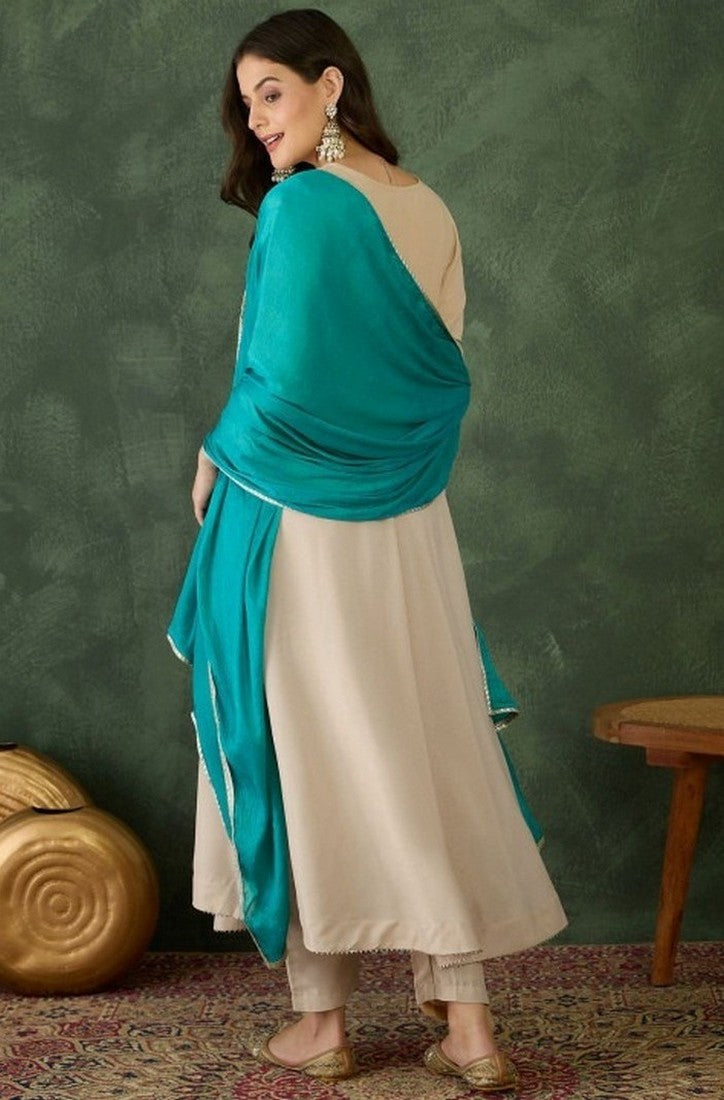 | Color | Top Color - Cream, Bottom Color - Cream, Dupatta Color - Turquoise |